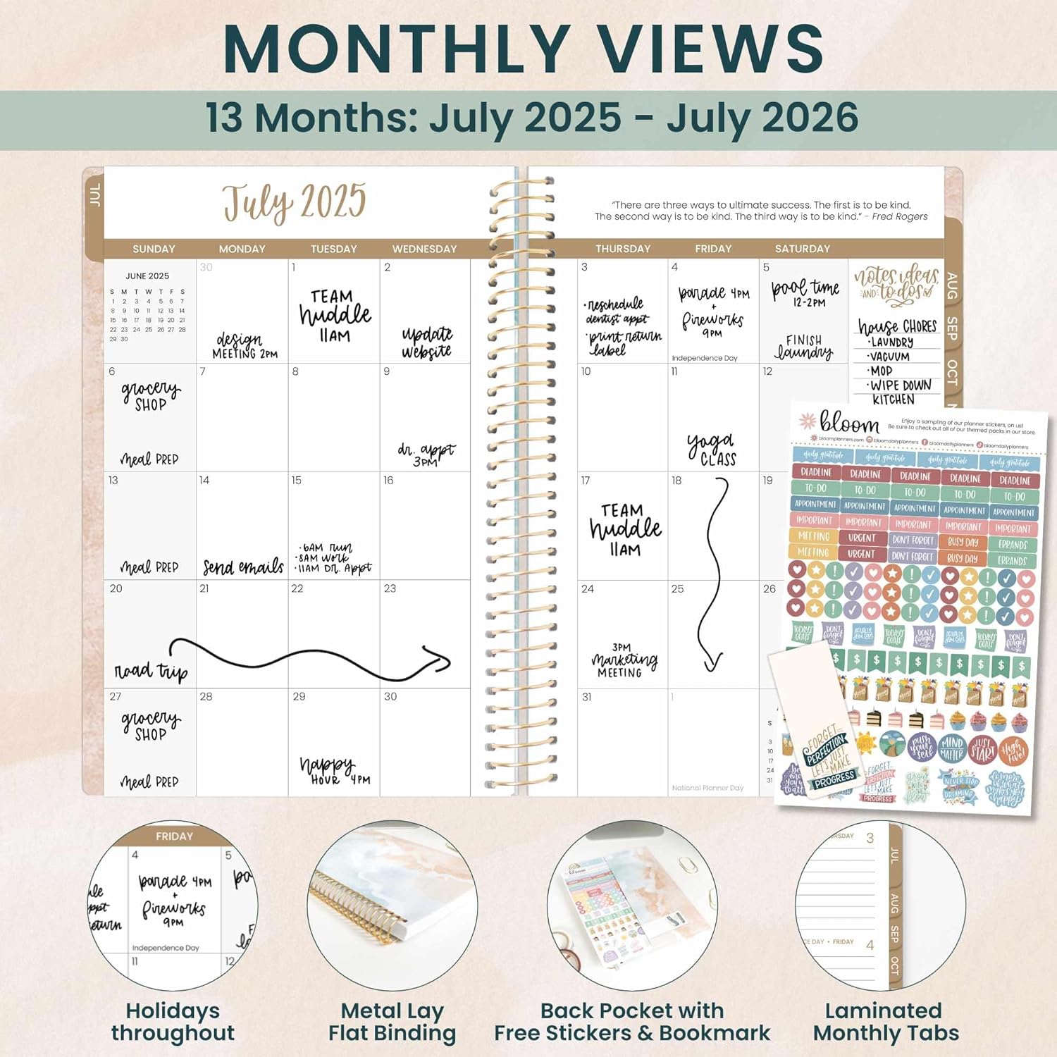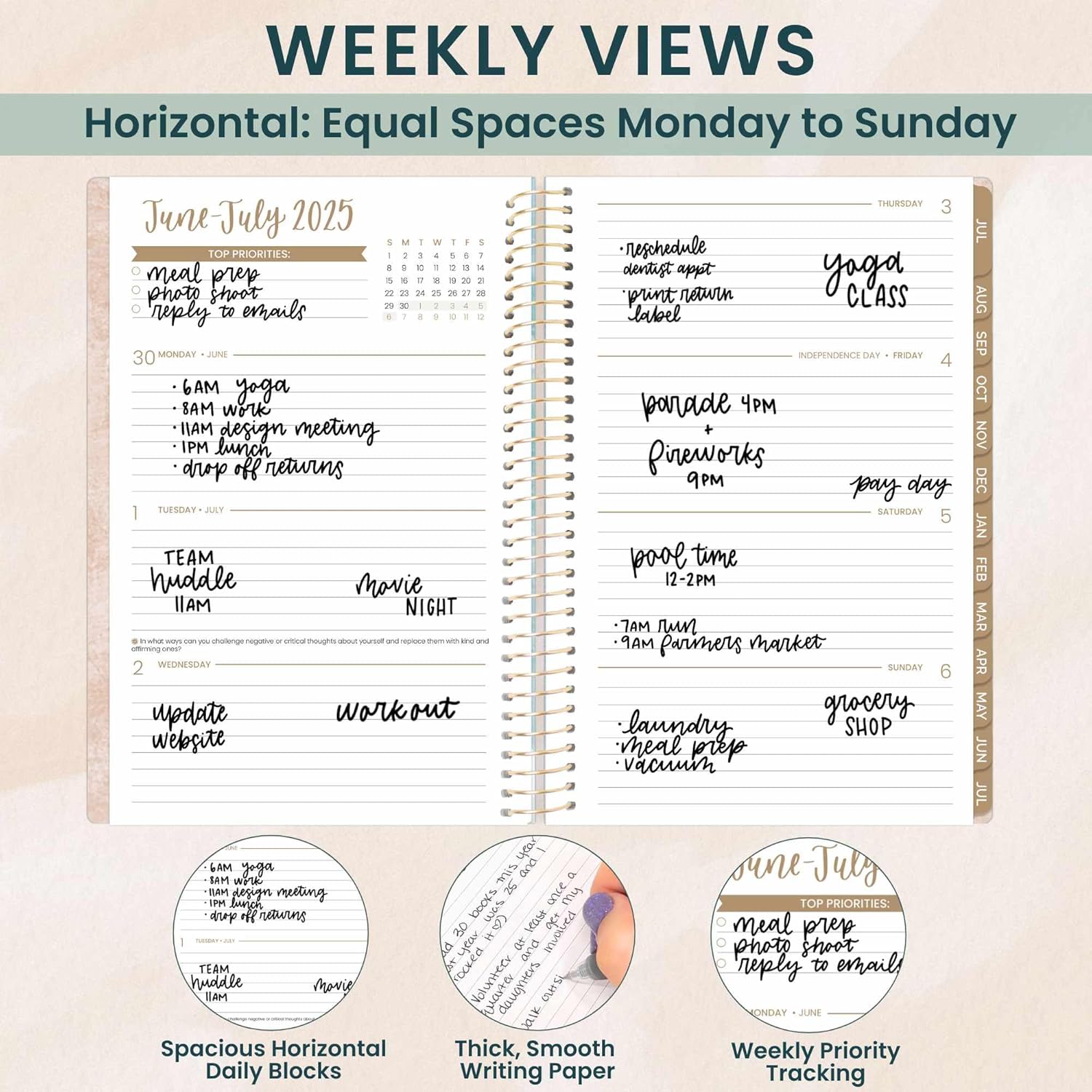 - EFFORTLESS WEEKLY & MONTHLY LAYOUT: This day planner features two-page monthly planner spreads and spacious horizontal weekly layouts, running from July 2025 through July 2026—perfect for tracking your tasks, deadlines, and appointments.