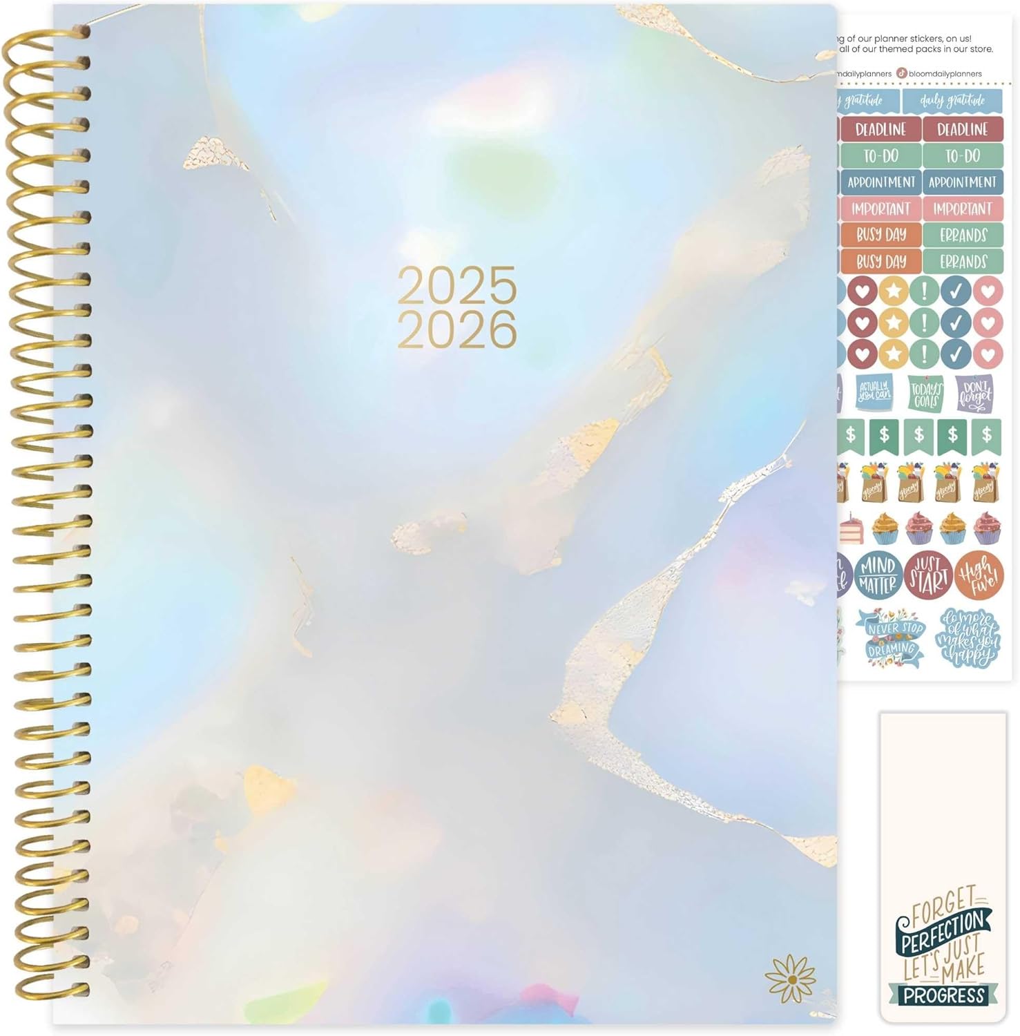 bloom daily planners 2025-2026 (8.5" x 11") Academic Year Day Planner (July 2025 - July 2026) - Weekly & Monthly Dated Agenda Organizer with Stickers & Tabs - Iridescent Opal