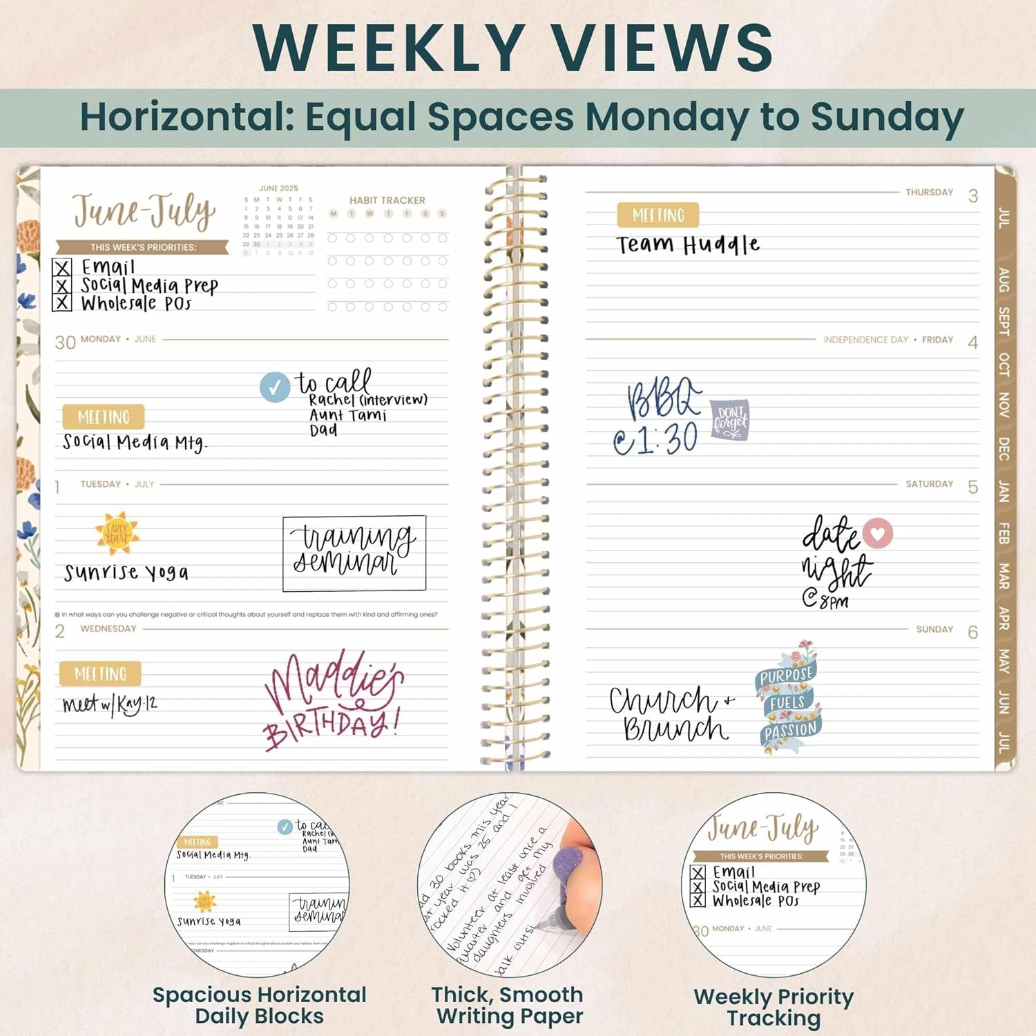 - 8.5” x 11” MONTHLY & WEEKLY PLANNER (JULY 2025 - JULY 2026): This academic planner provides monthly calendar spreads and horizontal weekly layouts, complete with priority & habit tracking sections to keep you focused.