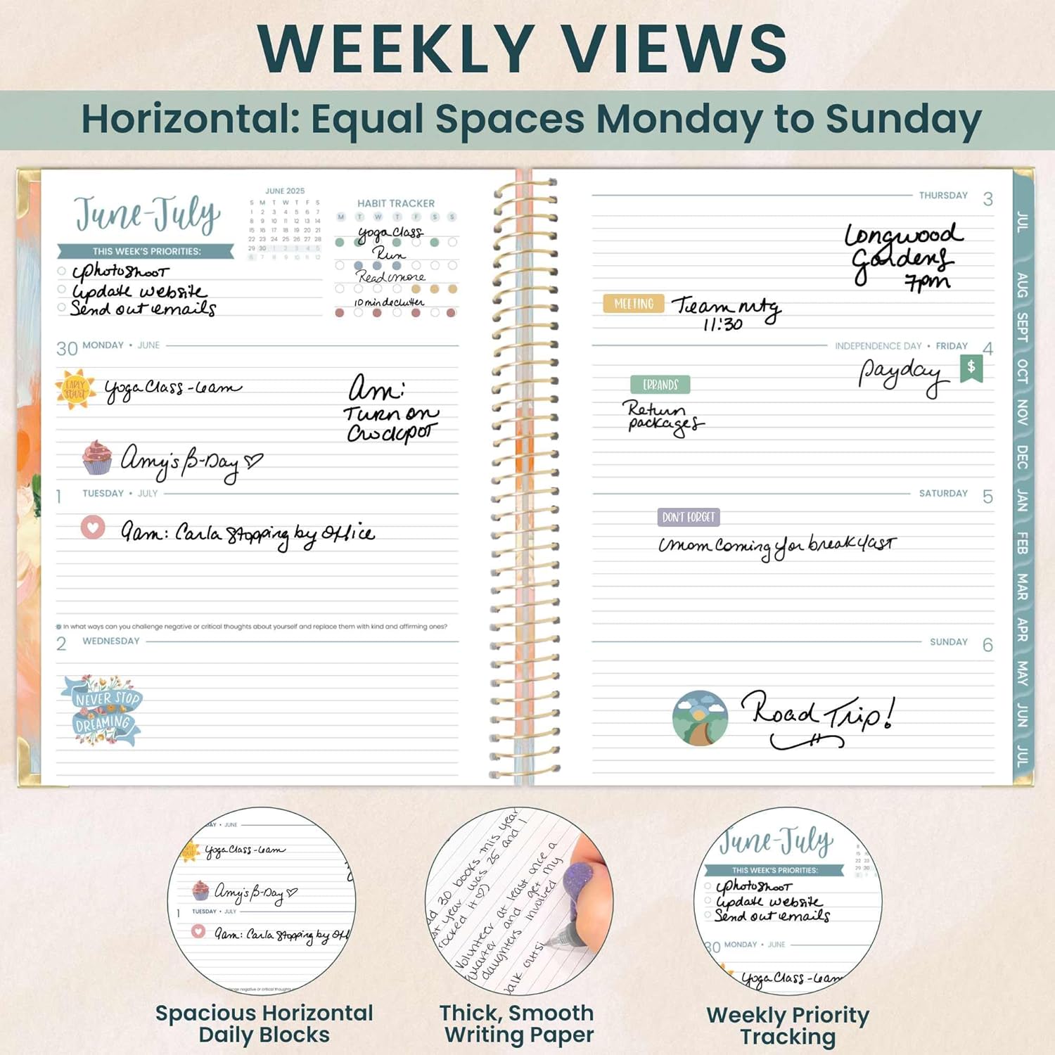 - LARGE 8.5” x 11” HARDCOVER PLANNER FOR WEEKLY & MONTHLY PLANNING: This 2025-2026 academic planner (July 2025 - July 2026) features spacious monthly overviews and horizontal weekly spreads. Weekly pages include priorities & habit tracking.