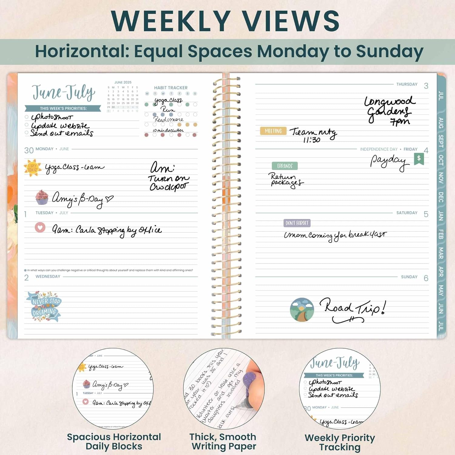 - LARGE 8.5” x 11” PLANNER WITH WEEKLY & MONTHLY LAYOUTS: This 2025-2026 academic planner features two-page monthly spreads and spacious horizontal weekly pages. Each weekly view includes priority & habit trackers to help you stay productive and goal-focused from July 2025 to July 2026.