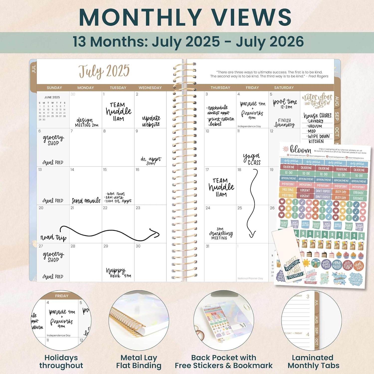 bloom daily planners 2025-2026 Academic Year Daily Planner (July 2025 - July 2026) - A5 Weekly & Monthly Calendar Agenda Organizer Book with Stickers - 5.5" x 8.25" - Iridescent Opal