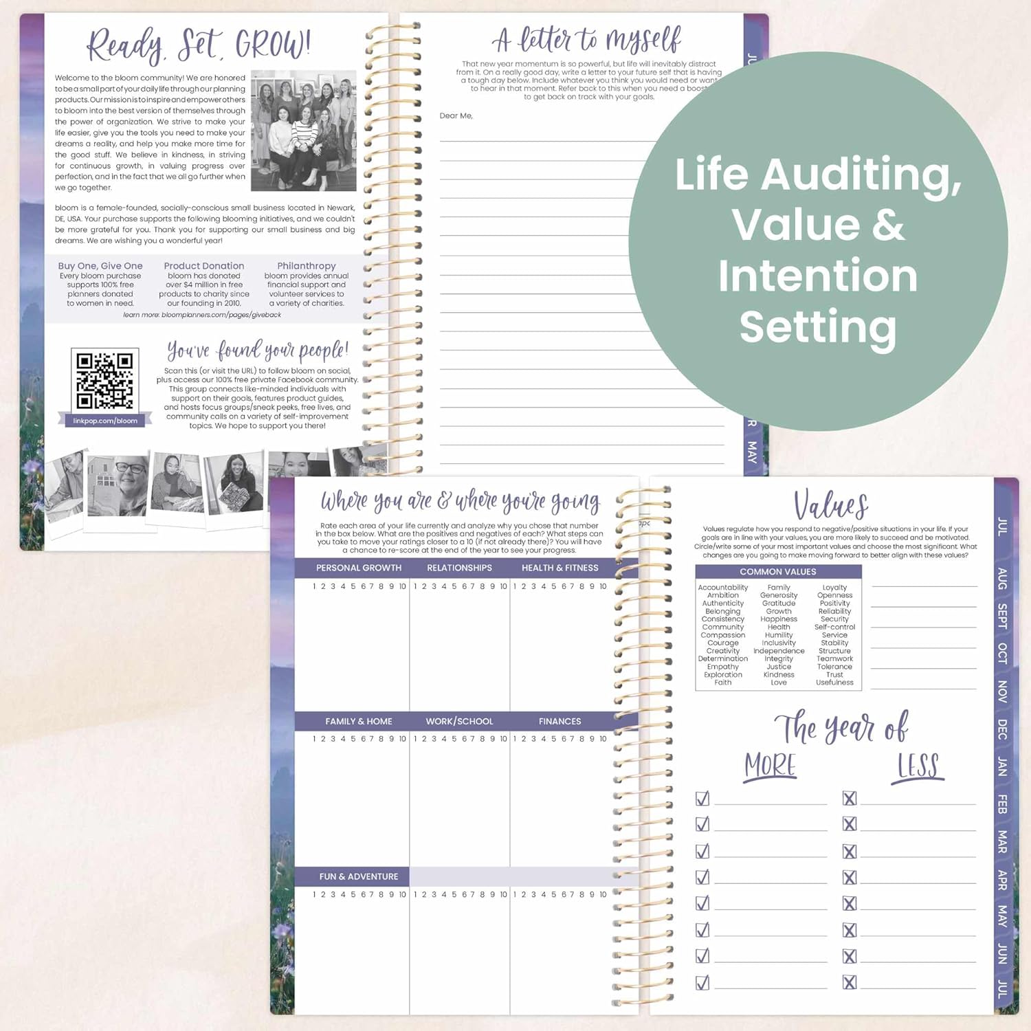- BONUS ELEMENTS: Packed with life coaching worksheets and inspirational features to help you set and achieve all of your goals for the year: yearly overview, values page, monthly bill tracking, acts of kindness challenges, 9 notes pages, important dates for next year, monthly quotes & more!