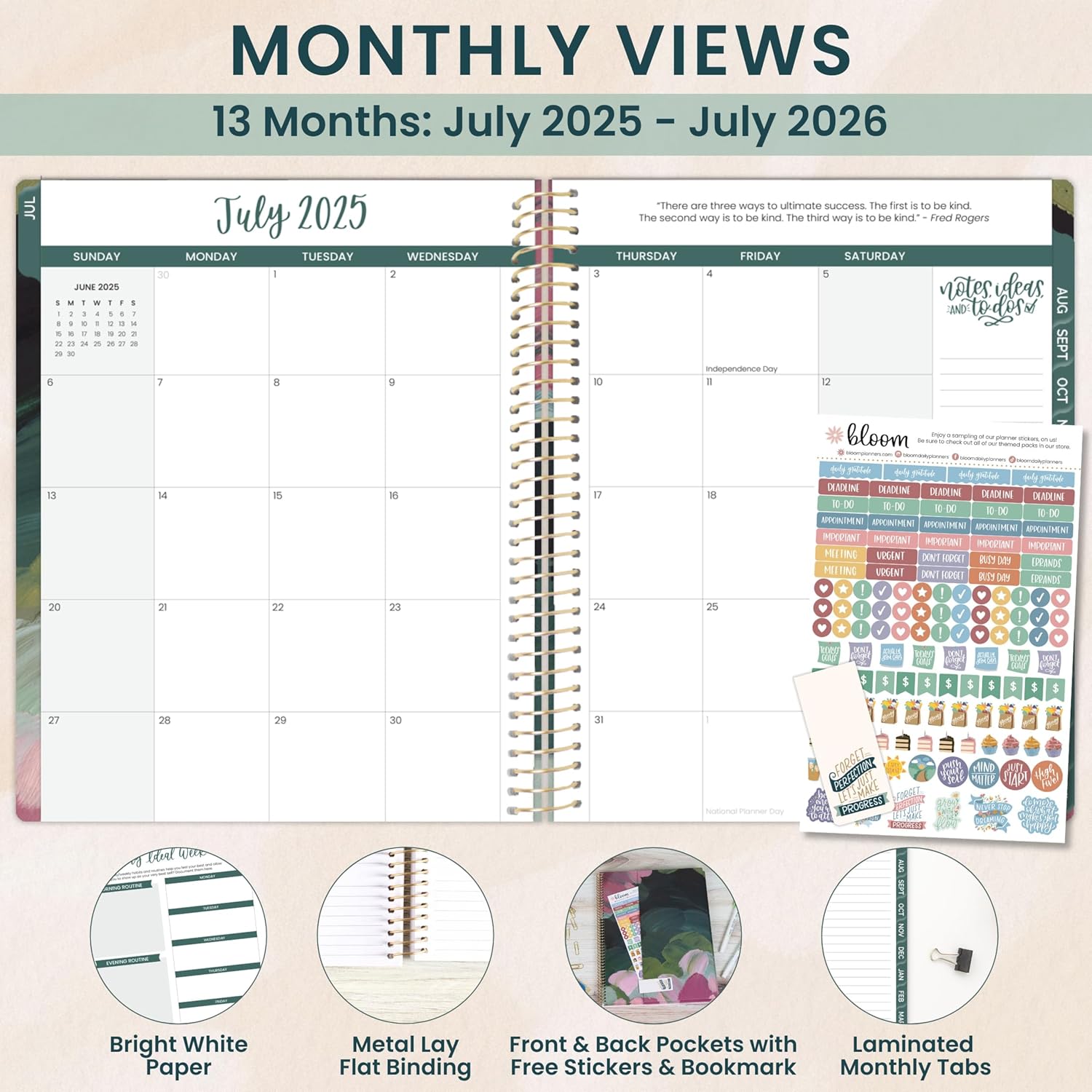 bloom daily planners 2025-2026 (8.5" x 11") Academic Year Day Planner (July 2025 - July 2026) - Weekly & Monthly Dated Agenda Organizer with Stickers & Tabs - Emerald Paint Strokes