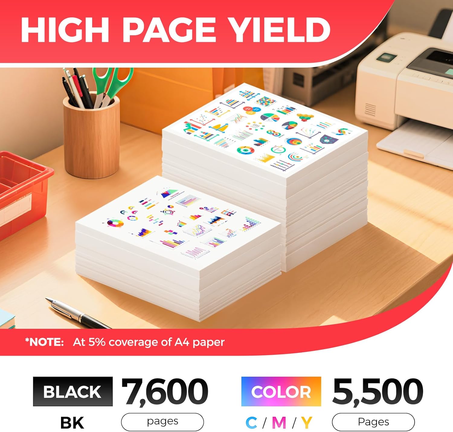 - High-Yield: up to 7,600‬ pages per 069H Black and 5,500 pages per 069H Color (Total 24,100 pages, 5% coverage)