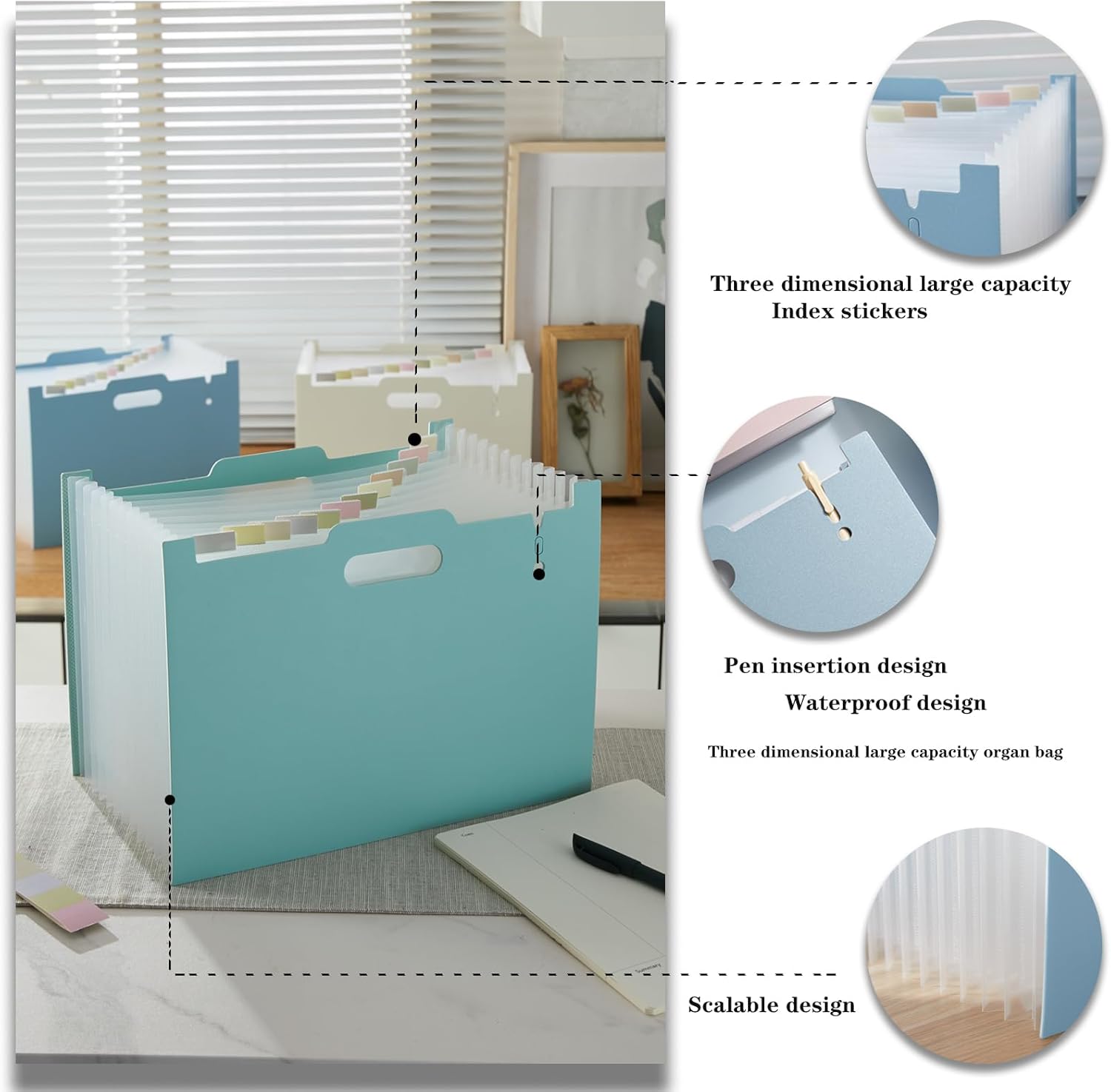 - Large capacity and space saving 12 pockets, full-size expansion top and bottom, flexible file expansion and reduction according to needs, foldable design, easy to carry