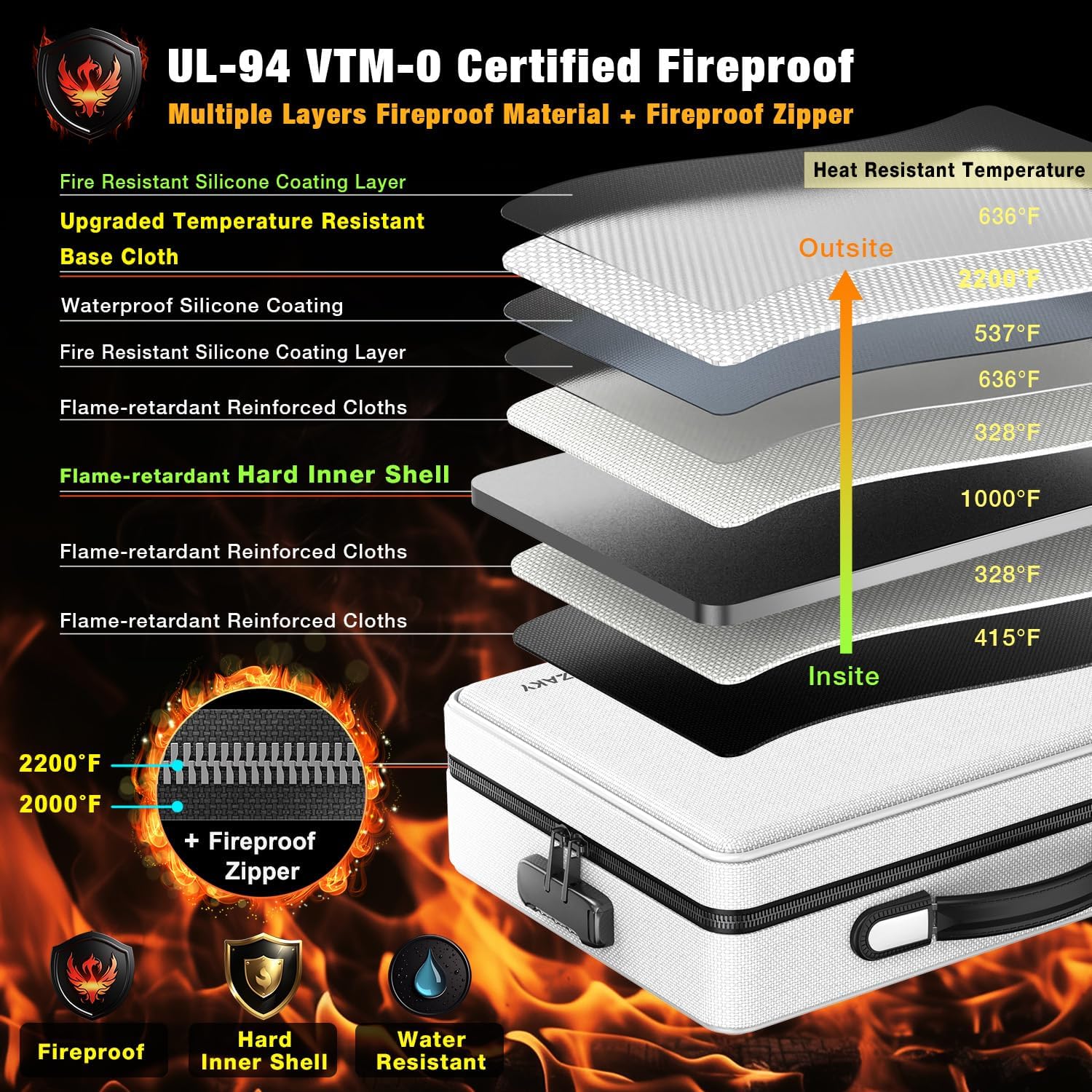 - 【UL-94 VTM-0 Certified Fireproof Box】ANZAKY fireproof document box is made of high-quality non-itchy, non-stick, dust-proof (Wipeable) silicone-coated fiberglass which can stands up against fire and passed the UL-94 VTM-0 Burning Test.