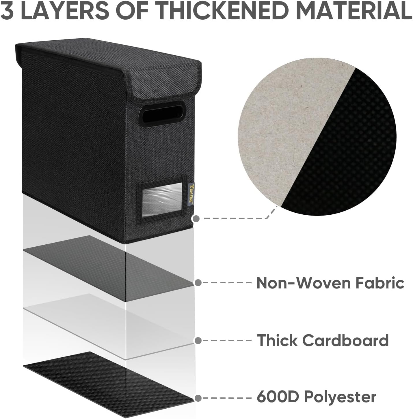 - [DURABLE MATERIAL] The outer layer of our filing box is crafted from high-quality polyester fabric and reinforced with thick cardboard in the middle. This construction ensures that the box maintains its shape and provides better bearing capacity for important documents and files. Its textured appearance can also serve as a stylish decorative element in any office or home