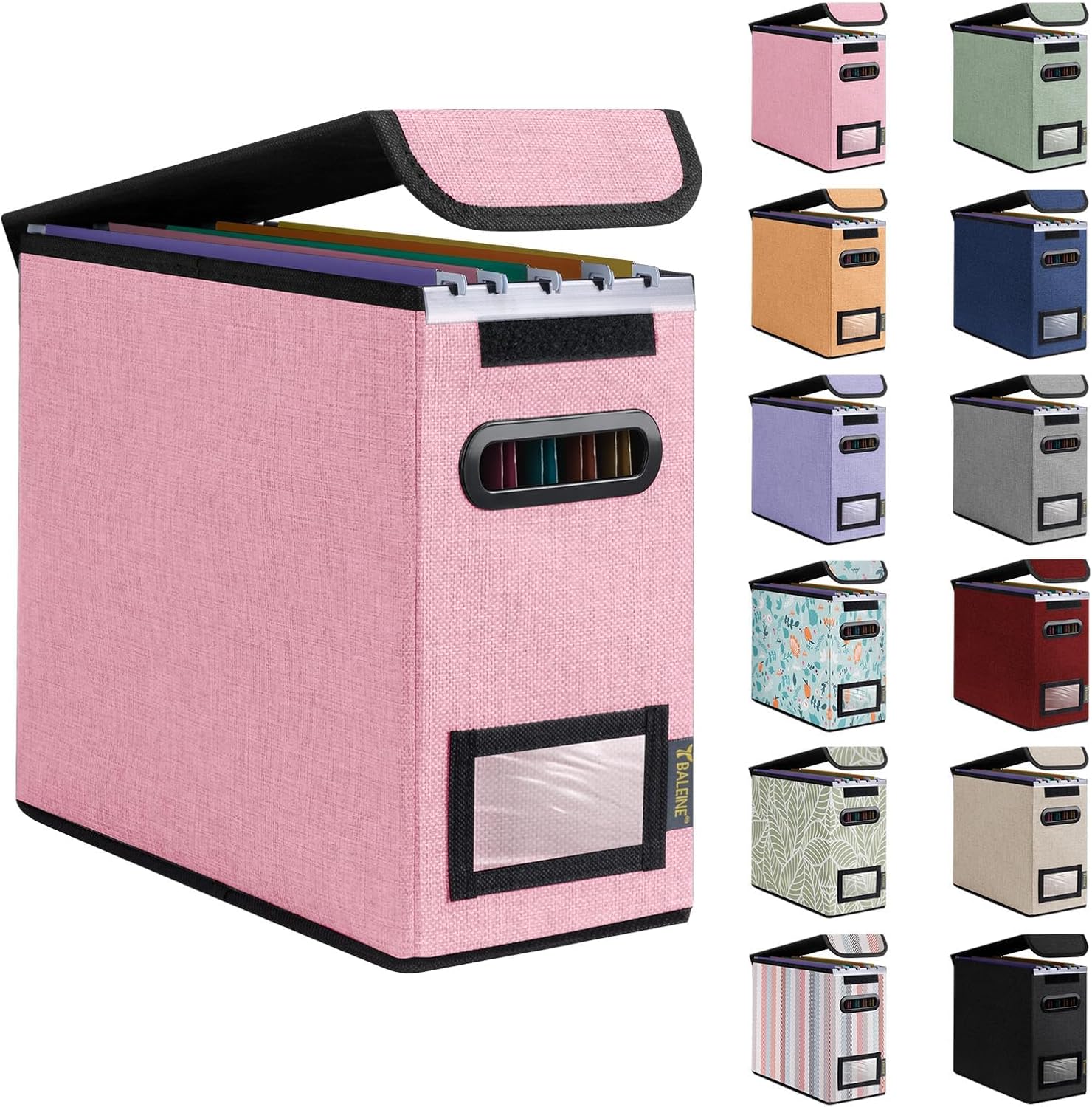 BALEINE File Organizer Box with Lid, Collapsible File Folder Organizer with Plastic Slide, Hanging File Folder Box for Office Document Storage (1 Pack, Pink, S)