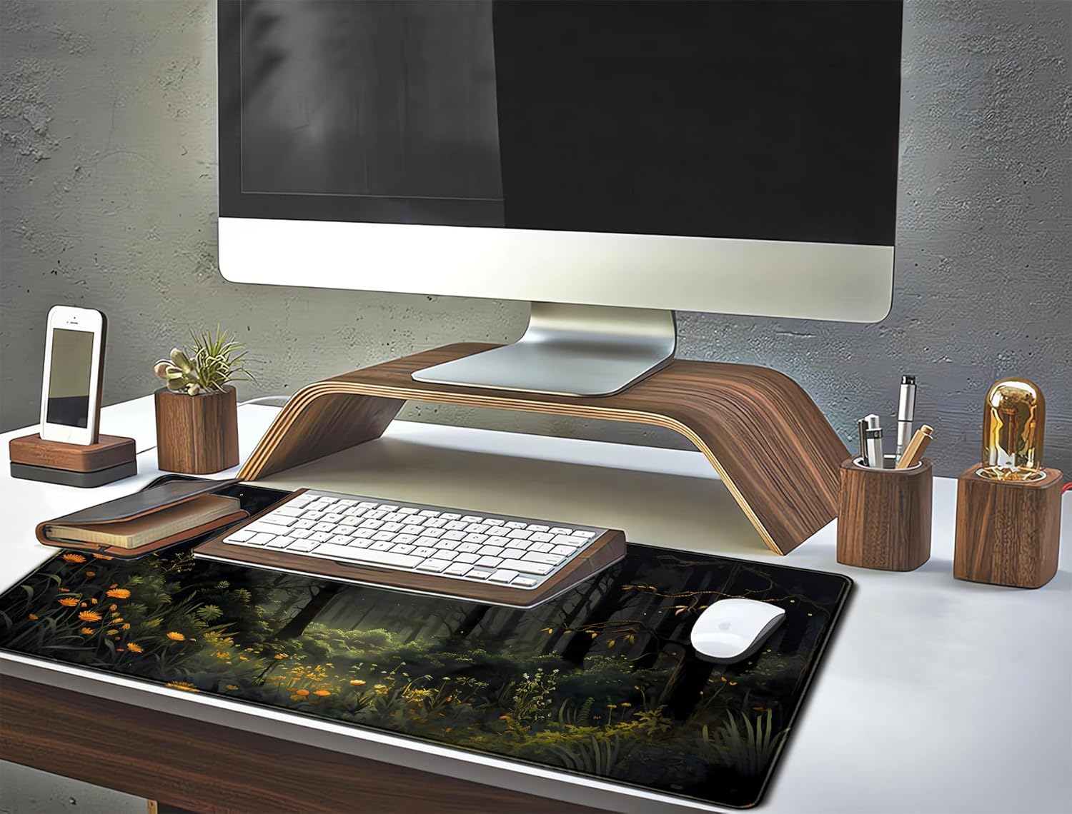 Dark Forest Desk Mat Mouse pad, Green Nature Deskmat XXL Large Extended Aesthetic Plant Mousepad Gaming Desk Pad, Big Laptop Computer Keyboard and Mouse Mat for Women Office Desk Decor 31.5x15.7 in