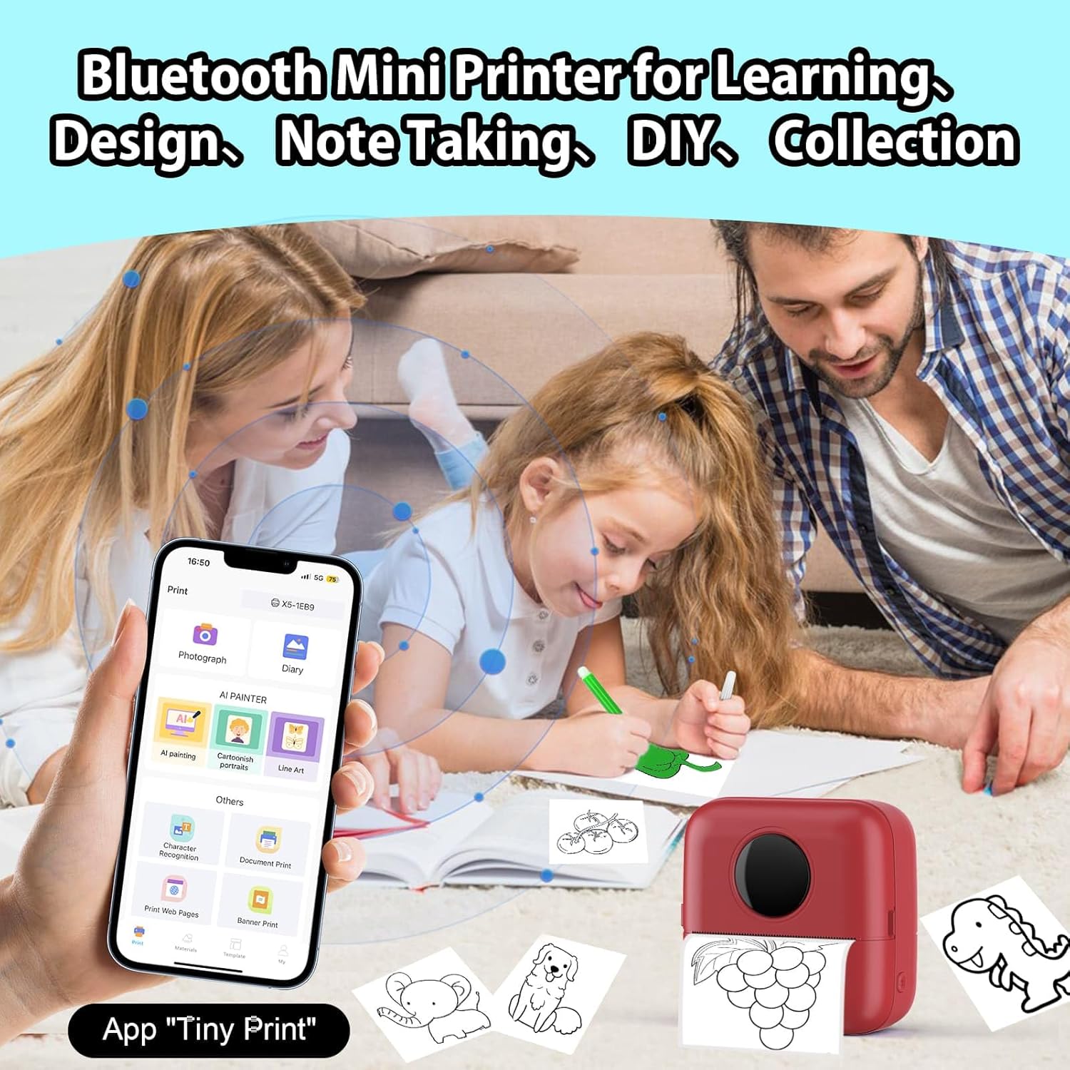 - 2025 Newest Printer & Pocket Portable: The HuiJuKeJi photo printer size is 82*82*45 mm, and it only weighs 210g, can be loaded with pockets, bags.It is easy to print anytime, anywhere, and can recognize text, pictures, tables, emoticons, QR codes, etc. Attention: Please follow the printer's user manual to search for "Tiny Print" in the App Store or Google to connect and use. Please search for a connection through the app instead of using the Bluetooth on your phone