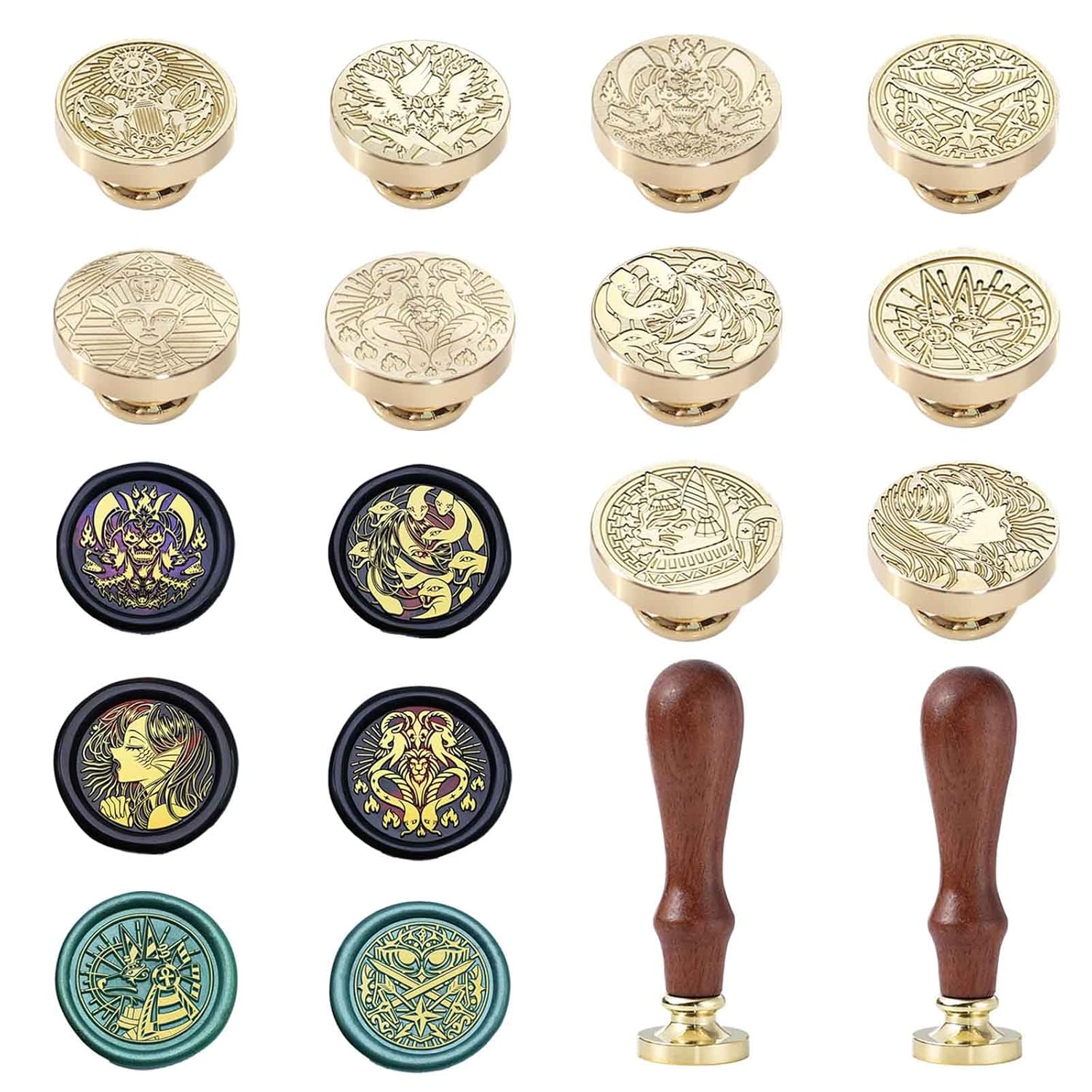 10PCS Mythical Wax Seal Set - Retro Brass Sealed Stamp, Removable Sealing Wax Stamp with 2 Handle (Thor,Anubis,Bastet,Medusa,Hades,Chimera,Siren,Sphinx,Athena,Apollo)