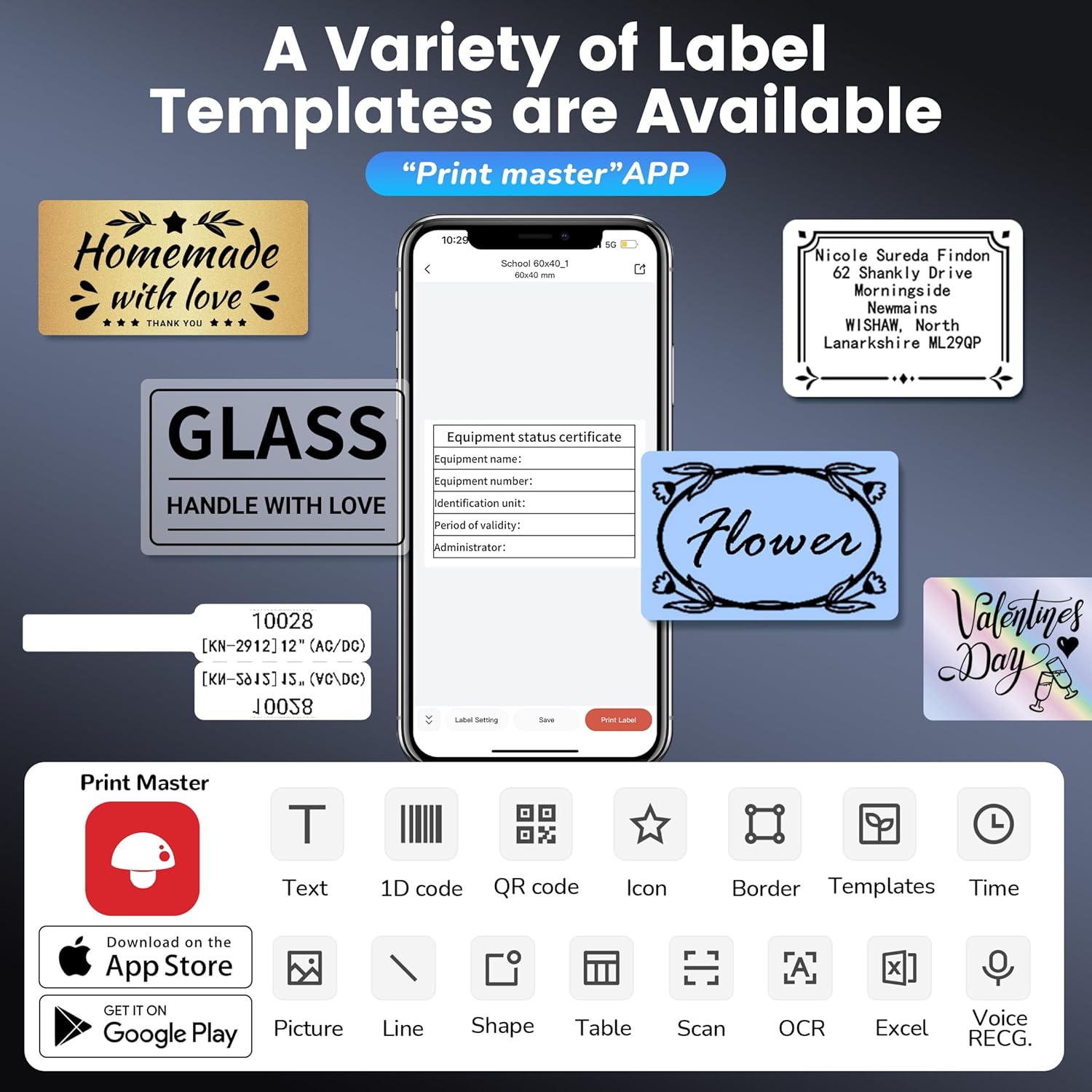 - Free Multifunctional App: The Phomemo M250 label maker printer comes with the powerful "Print Master" app. Create various content like QR codes, text, OCR, images, voice recognition, and batch printing. Choose from over 1500 symbols, 200+ templates, 110+ fonts, and 20+ languages for limitless customization options