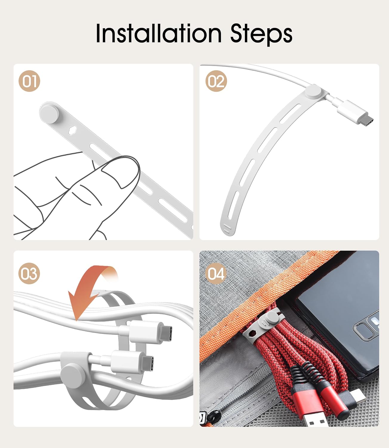 - 【Self-locking Design】Our cable strap has button and button hole design at the top that allows it to wrap around the cable, making it easy to secure the cable strap to the cable to prevent it from falling off
