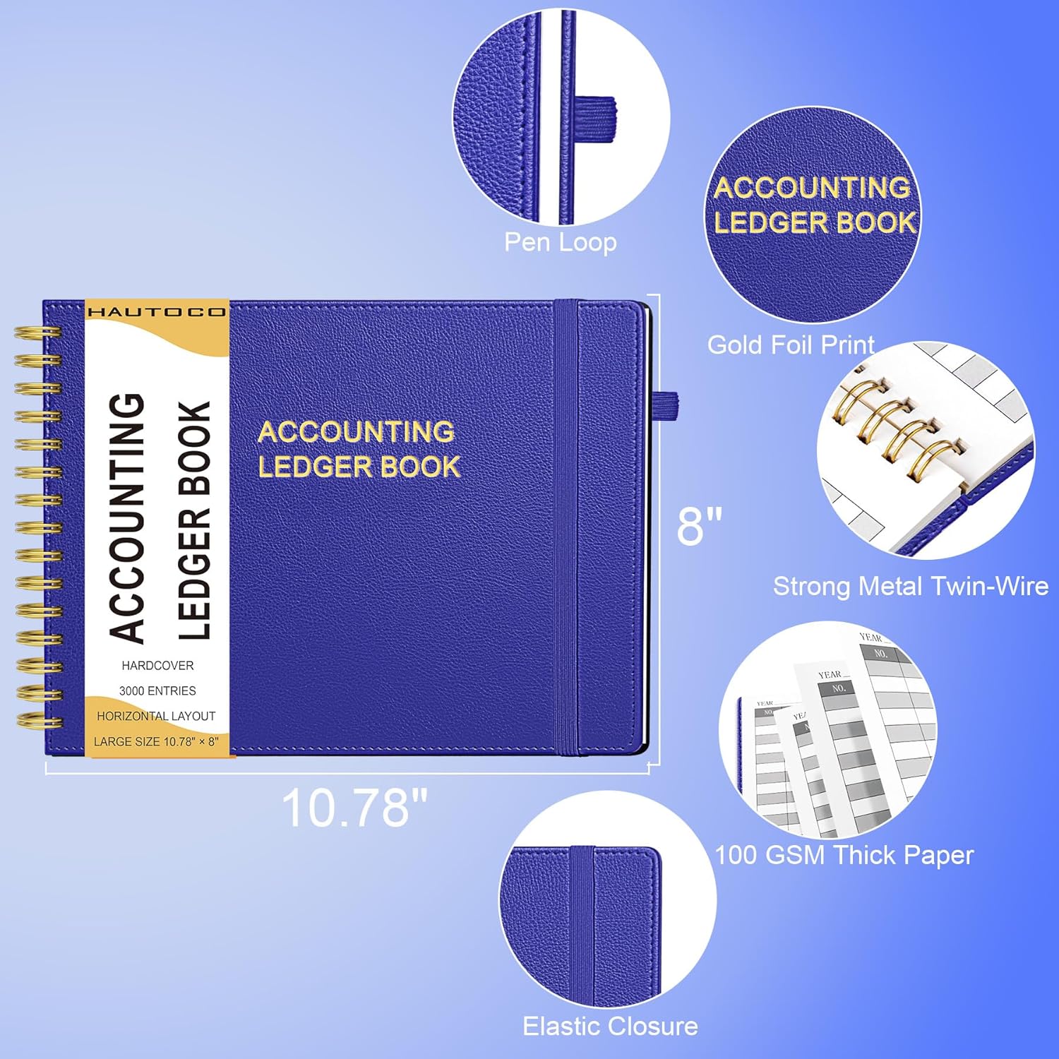 - Easy To Track Your Finances: HAUTOCO horizontal accounting ledger book keeps you on top of your expenses and income! Help you keep your money organized, spend well, and set and achieve financial goals
