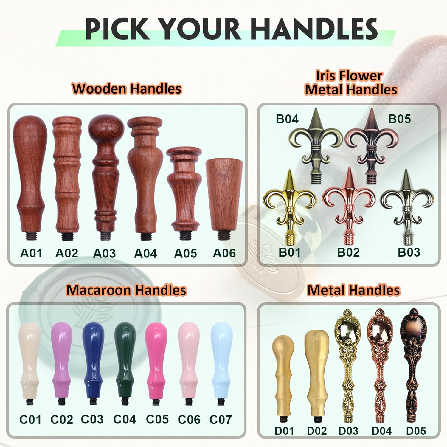 - ♥Versatile Sizes - Macchiole Sealing Wax Stamp provides 7 different sizes of stamp, which are: 0.79inch(20mm), 0.98inch(25mm), 1.18inch(30mm), 1.38inch(35mm), 1.57inch(40mm), 1.77inch(45mm), 1.97inch(50mm) and totally 23 different types of handles for choosing.