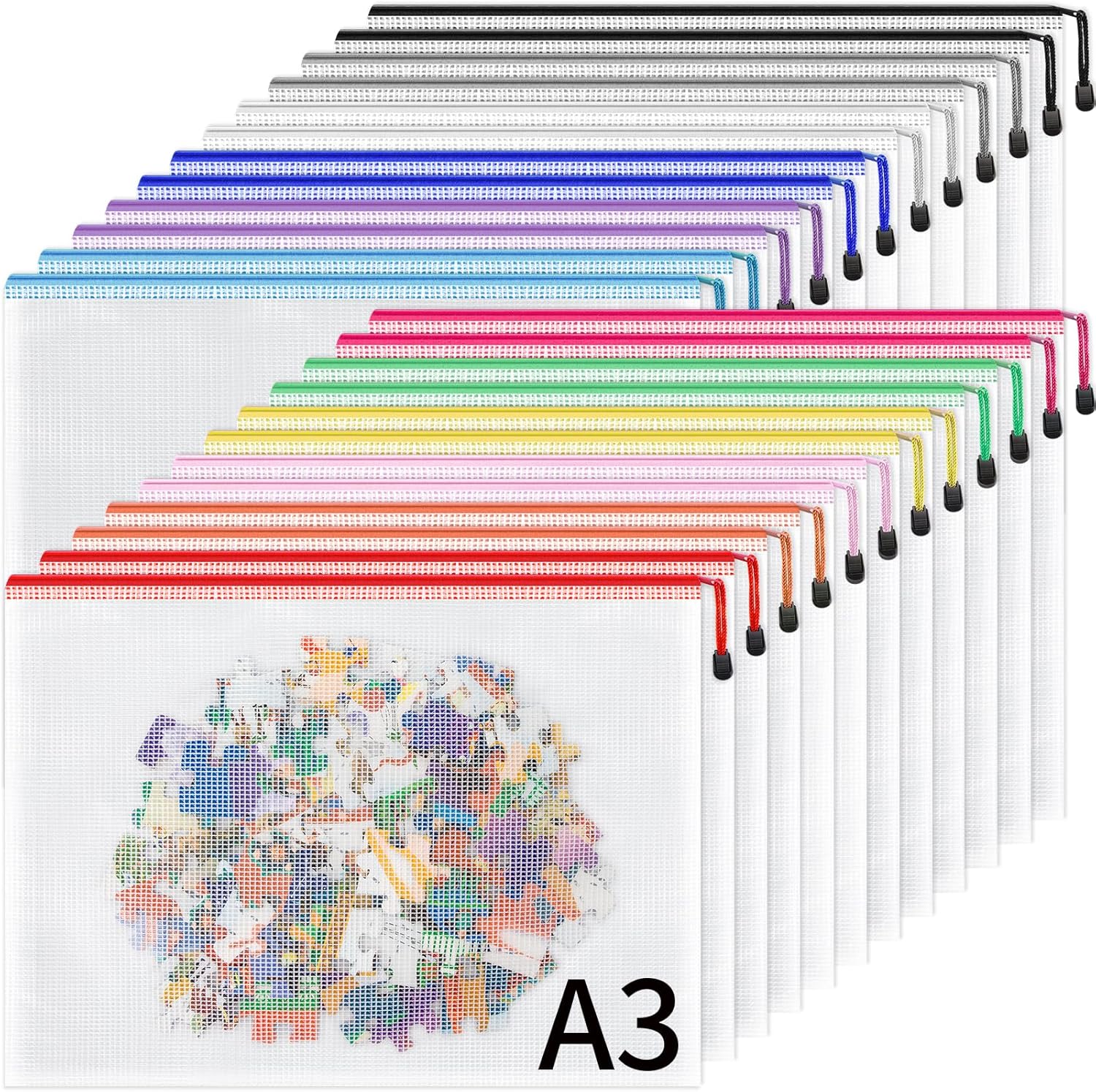 Umriox 24 Pack 12 Colors Zipper Pouches for Organizing, A3 Size (16.9 x 12.4), Big mesh Bags,Zipper Bags for Puzzles & Board Game Storage, Office Supplies Travel Toiletries