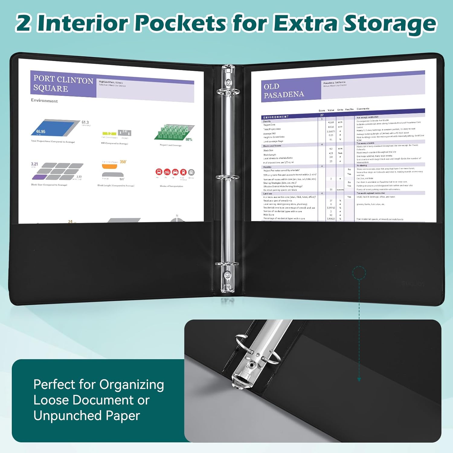 - Large Storage Capacity: The 1.5 round ring binder holds up to 325 sheets of 8-1/2-by-11-inch paper or 3-hole folders.The two pockets inside the three ring binder work well for storing unpunched documents,handouts, small papers and other loose.