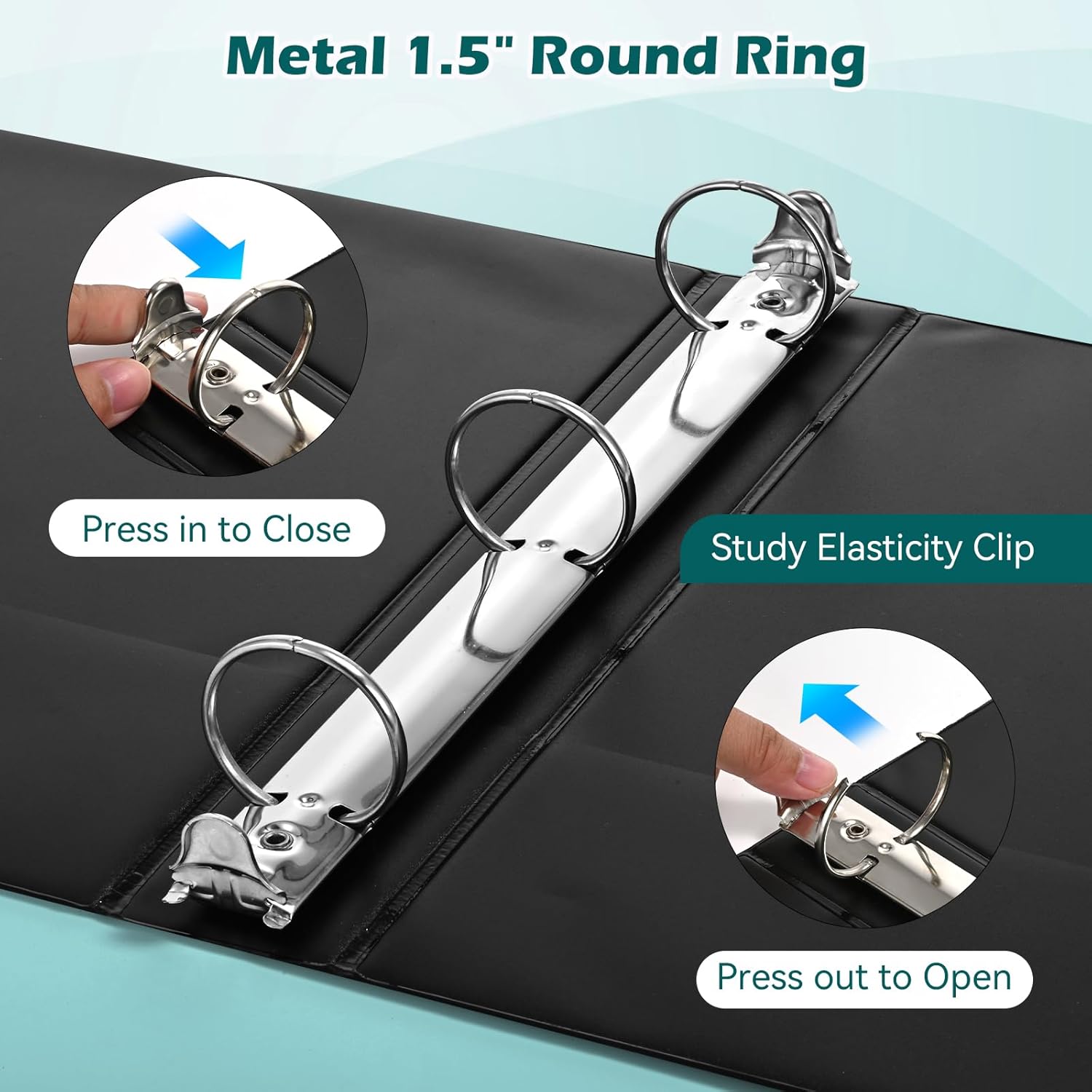 - Durable Binder: Made of sturdy PVC-free, non-stick material,The 1.5 inch binder 3 ring is withstand frequent use and prevents wear and tear , keep your file and important document in safe.