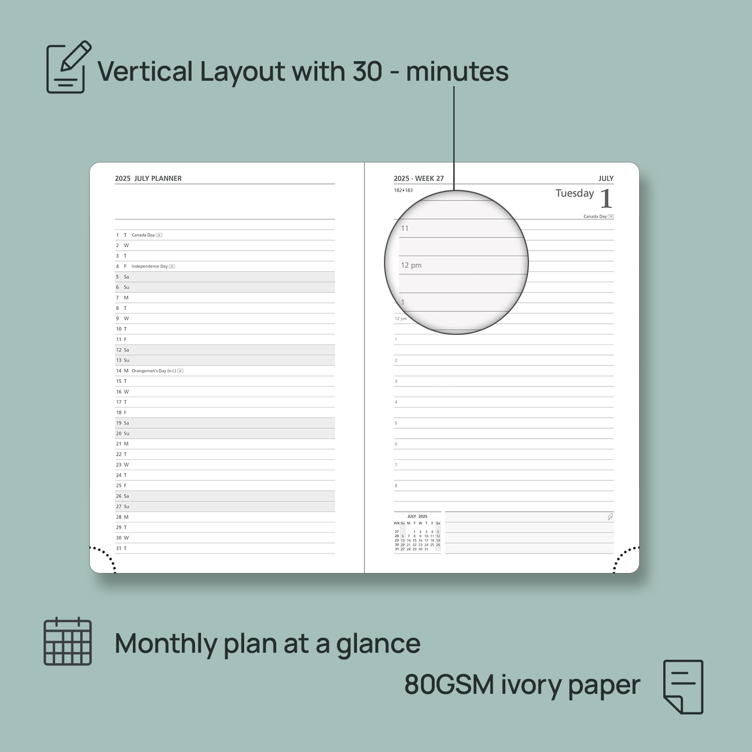 POPRUN 2025-2026 Daily Planner One Page Per Day (Medium - 5.75'' x 8.5'') - Academic Calendar (July 2025 - June 2026), 2025 Day Appointment Book with Monthly Tabs, Hardcover - Midnight Green