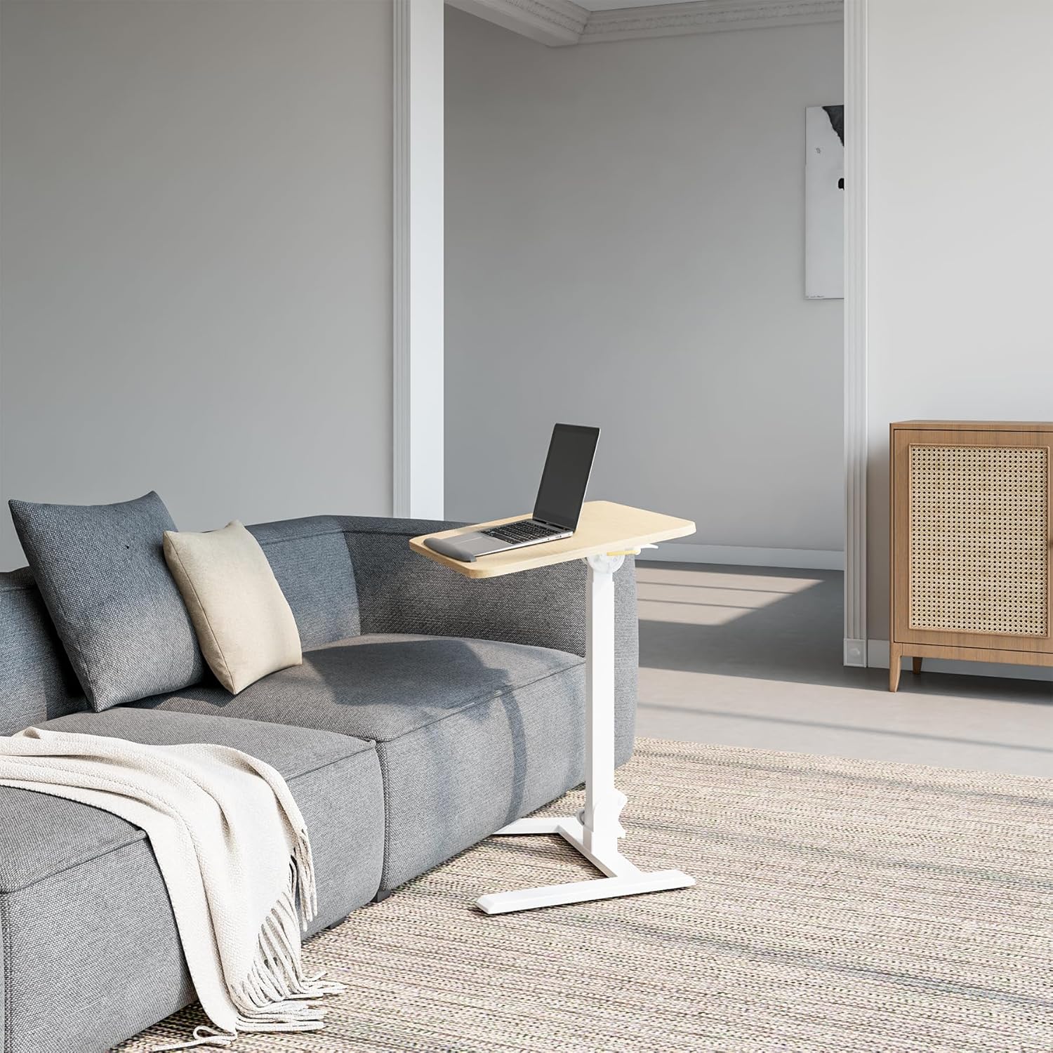 Mobile Folding Desk - 25 Inch Space-Saving Portable Sit-Stand Desk with Wheels, Height Adjustable for Home Office, Craft & Study, Beige
