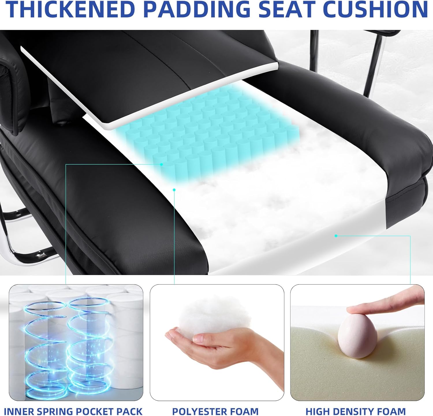 - ๐ช๐๐๐๐๐๐๐๐๐๐: Big and tall office chair features scratch-resistant PU leather. Task chair is easy to maintain. Big high back office chair filled with double-layer polyester foam and sponge seat and backrest provide unmatched comfort for all-day sitting.