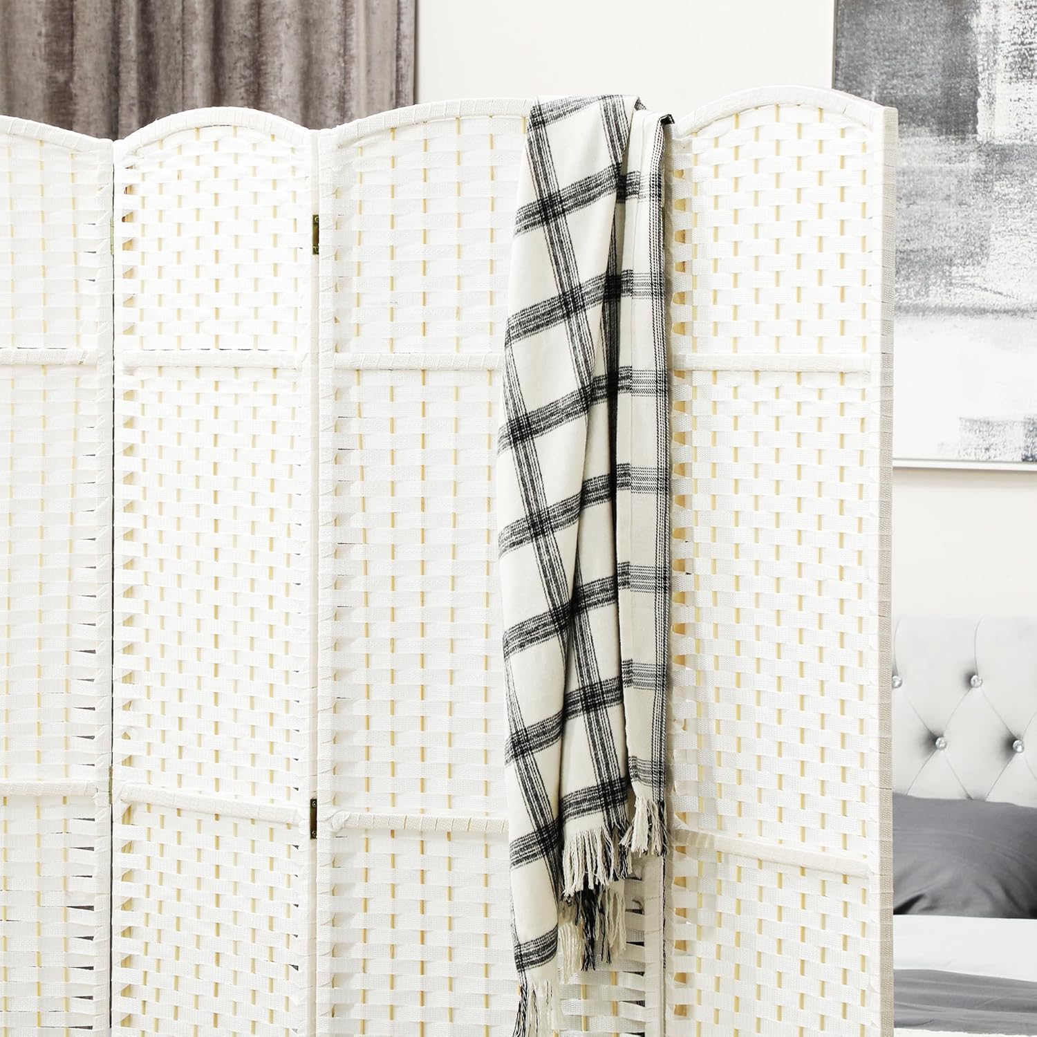 - Hand-Woven Elegance: A stylish hand-woven pattern with an arched top combines natural beauty with practicality. The polypropylene wall divider for room separation is water repellent, resists tear and wear, and offers superior privacy with dense opacity.