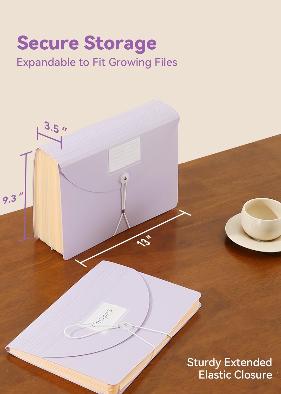 - Secure Storage: Sturdy plastic for lasting use. Reliable adjustable elastic closure keeps files in place