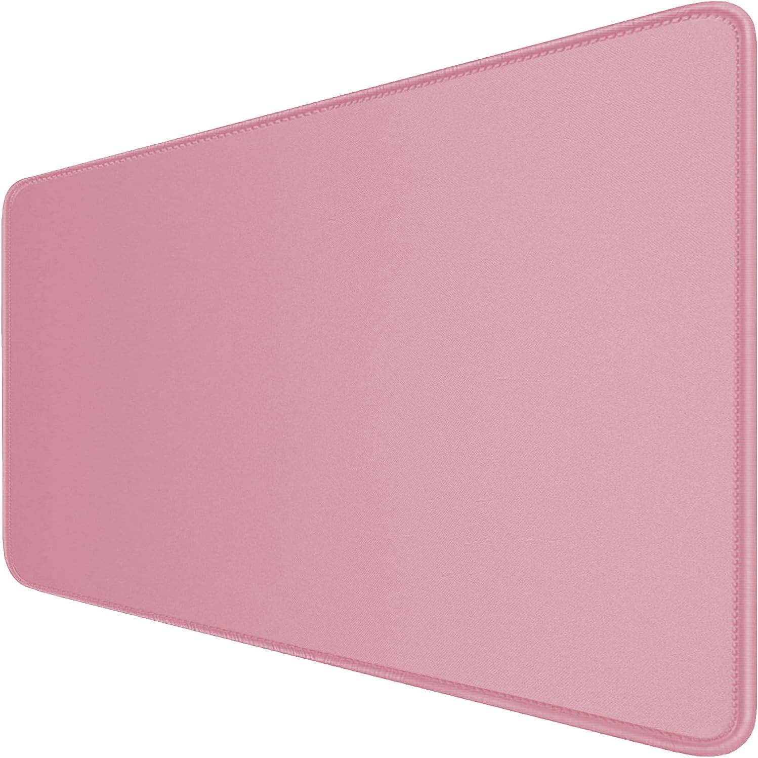 Large Mouse Pad with Stitched Edges, Durable Non-Slip Natural Rubber Base, Waterproof Computer Keyboard Pad Mat for Esports Pros/Gamer/Desktop/Office/Home - Pink
