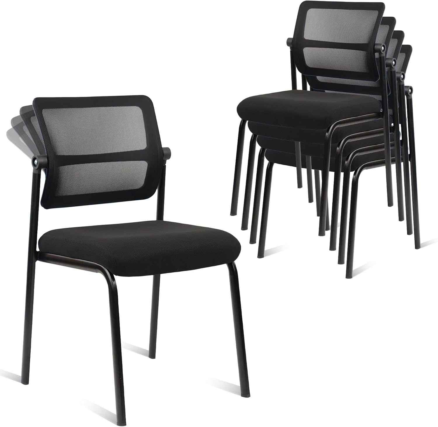 CLATINA Stacking Armless Office Waiting Room Chair with Adjustable Backrest, Stackable Mesh Guest Reception Desk Chairs with Ergonomic Lumbar Support for Conference Lobby Side School, Black, 4 Pack