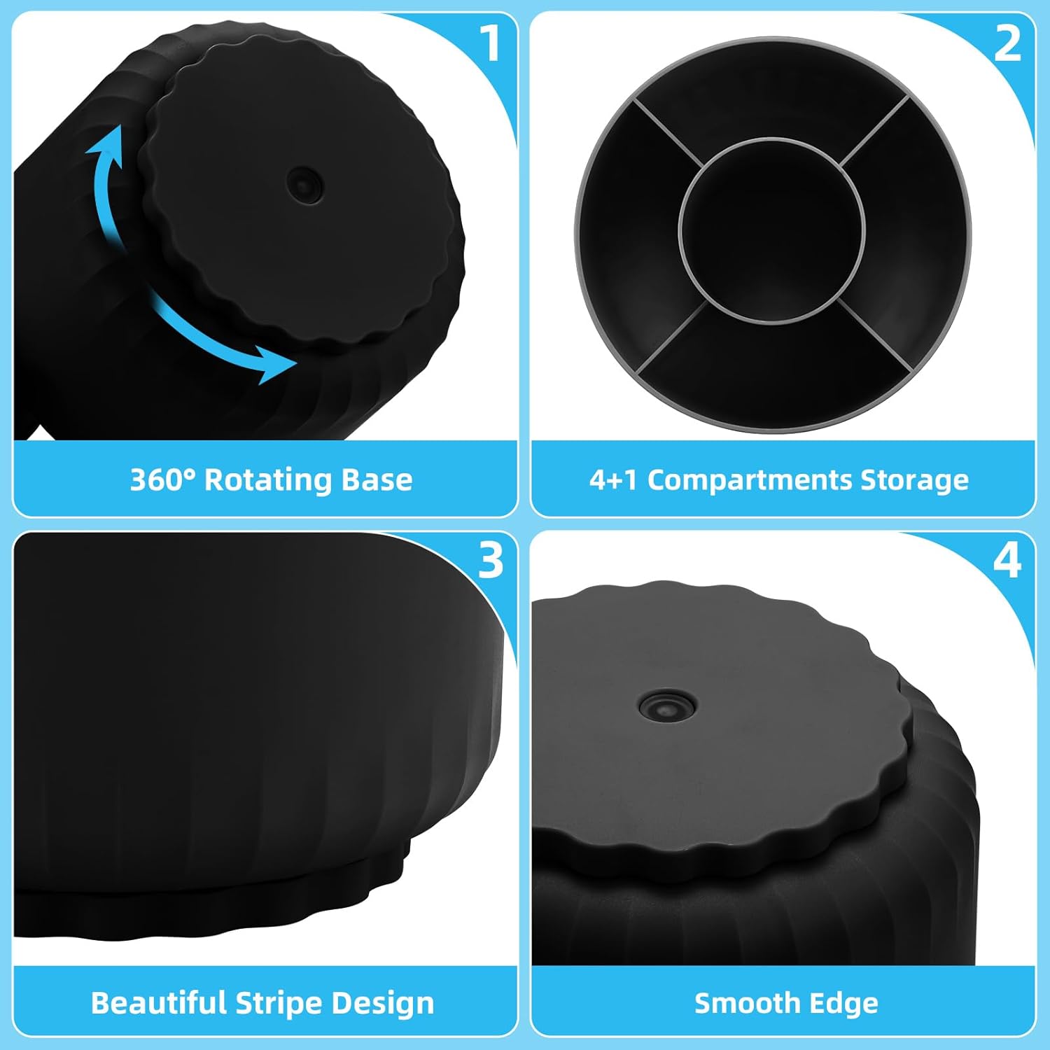 - ăSmart 360 Degree Revolving Designă: This desktop organizer can be turned up to 360-degree rotation to the left and right. This storage caddy allows you to keep all of your small items within reach while staying out of your way. You can always get what you want quickly and easily. The product can be bilaterally and smoothly rotated, just turn as you please