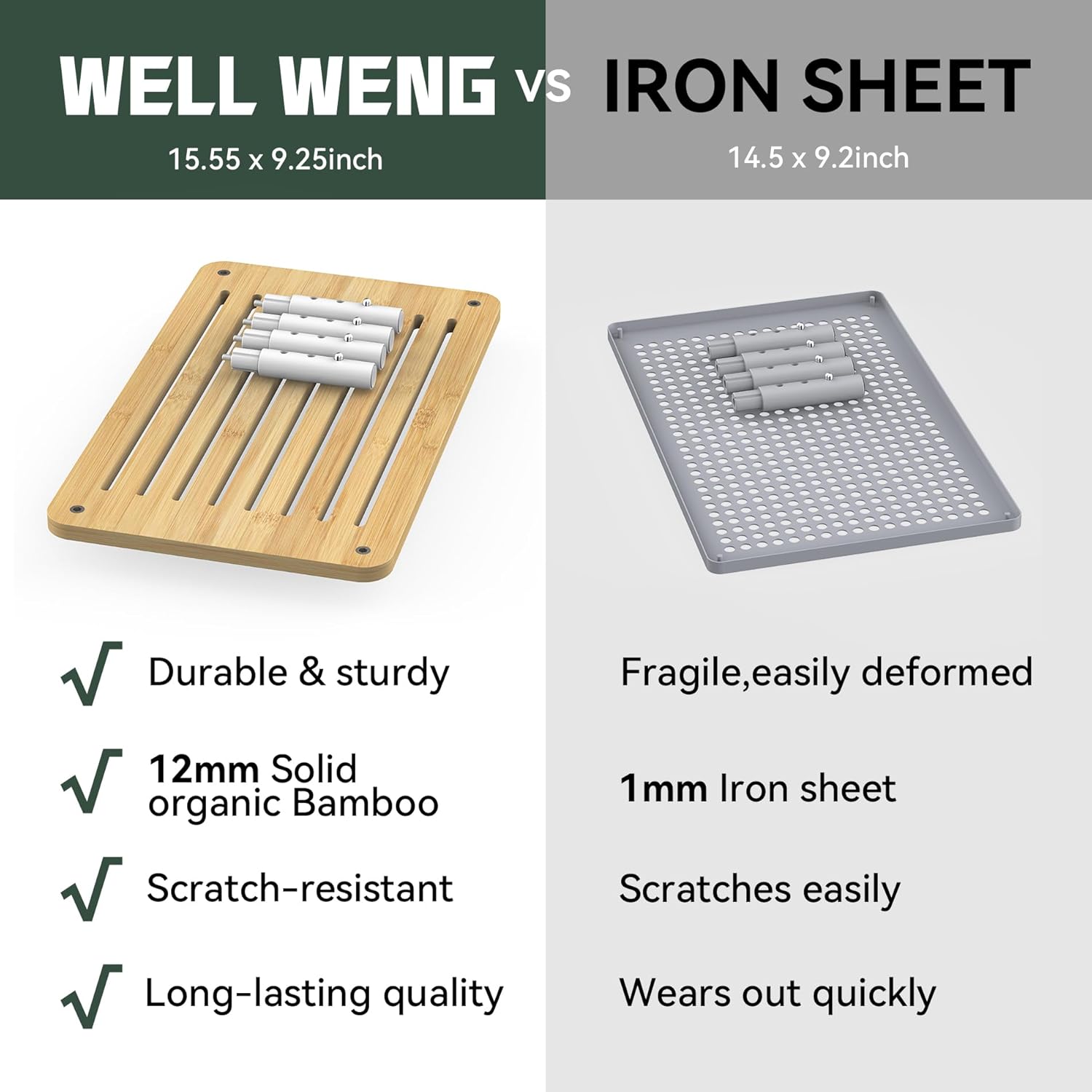 - Effective Heat Dissipation: Our monitor stand is crafted from high-quality bamboo, featuring a ventilated platform to prevent overheating and improve airflow for your electronic devices.Dimension-15.55”Wx9.25“Dx5.98"H(max)