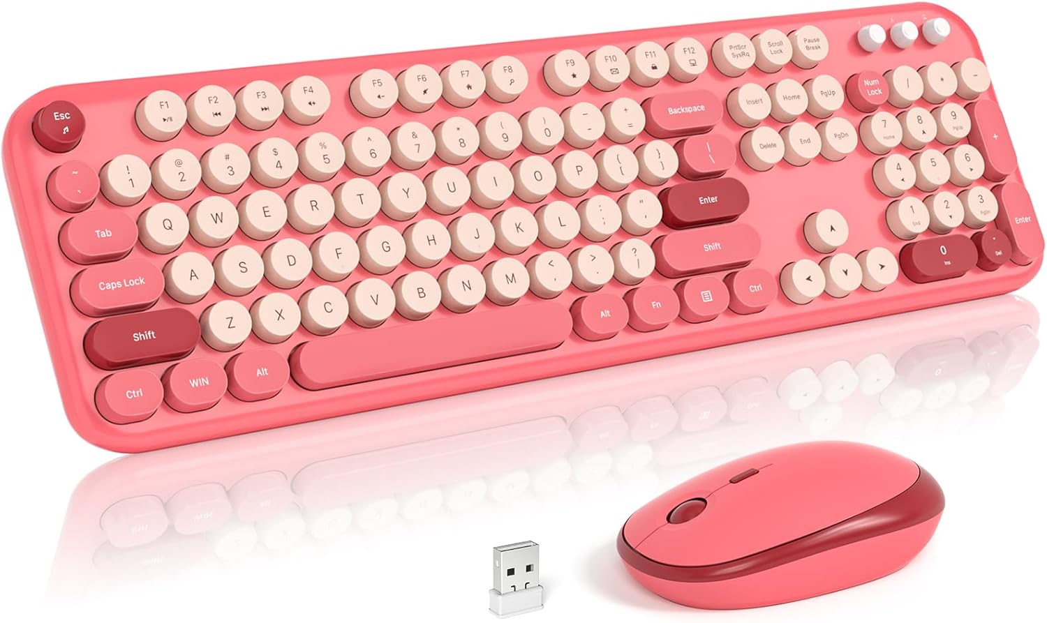 Wireless Keyboard and Mouse Combo, 2.4Ghz USB Retro Full Size Typewriter Keyboard and Cute Mouse Set for Windows 7/8/10, Laptop, Desktop, PC, Computer