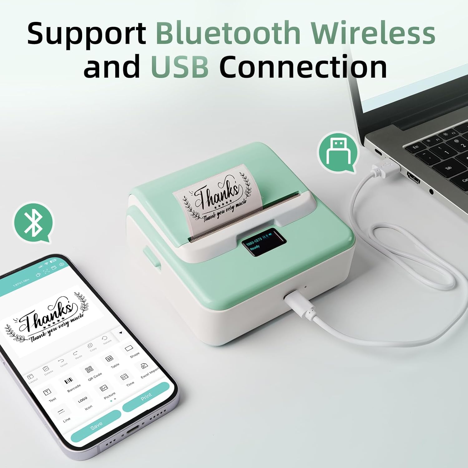 - Powerful App: With Bluetooth connectivity, you can use the free 4Barcode app, which offers over 150 ready-to-use label templates to boost your efficiency; You can also design and save your own templates with access to 80+ fonts and 670+ icons; The app supports a variety of features, including QR codes, barcode labels, tables, materials, timestamps, numbers, text, icons, and more, enabling fully customized label creation