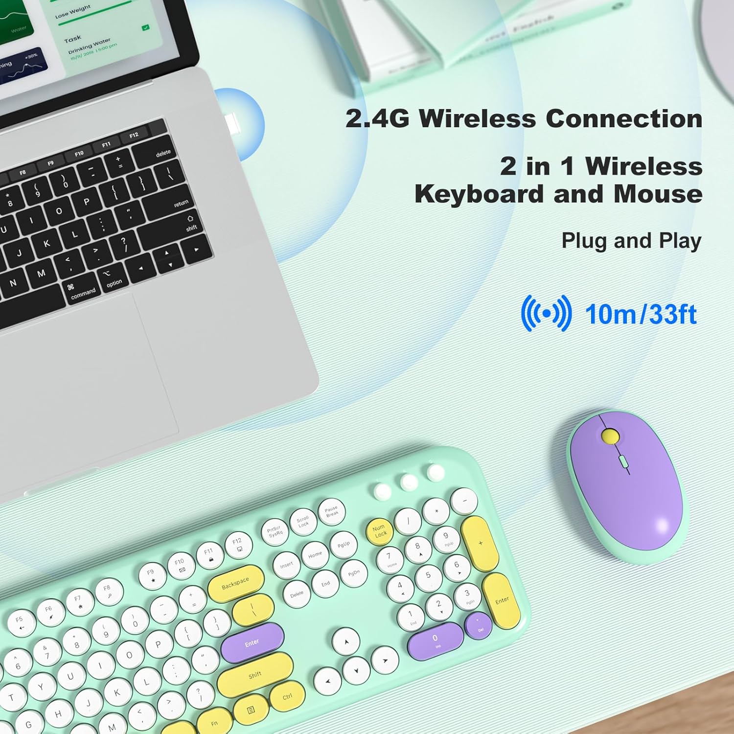 MOFII Wireless Keyboard and Mouse Combo, Cute Keyboard Full Size and Wireless Mouse, 2.4GHz Retro Typewriter Keyboard and Mouse Set for PC/Desktop/Laptop/Windows (Mint Green)