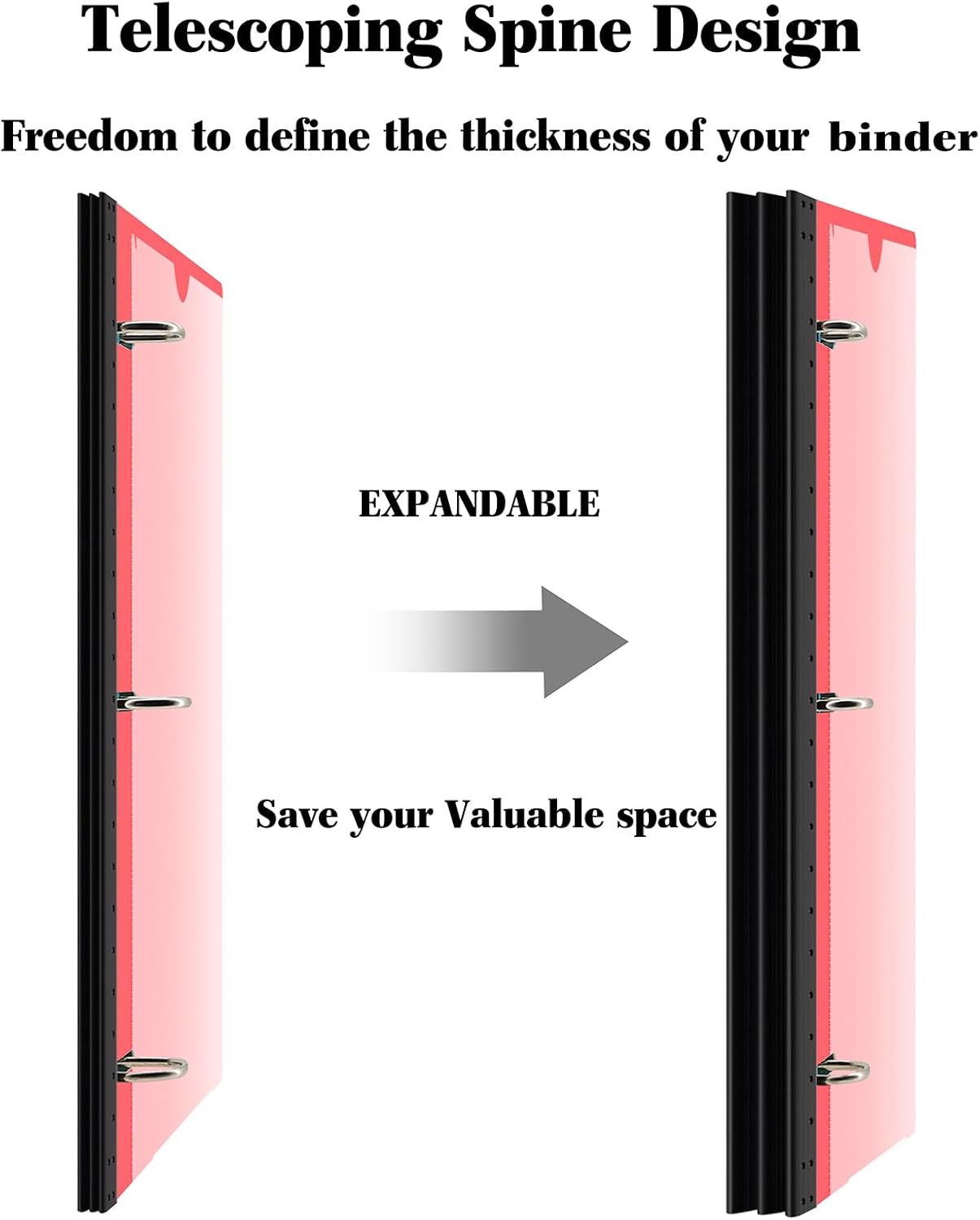 - Innovative Telescoping Spine Design : With this innovative design, you can easily customize the binder's capacity to fit your needs, whether you have a few papers or a larger collection. This allows for a compact and organized storage solution, eliminating unnecessary bulkiness.