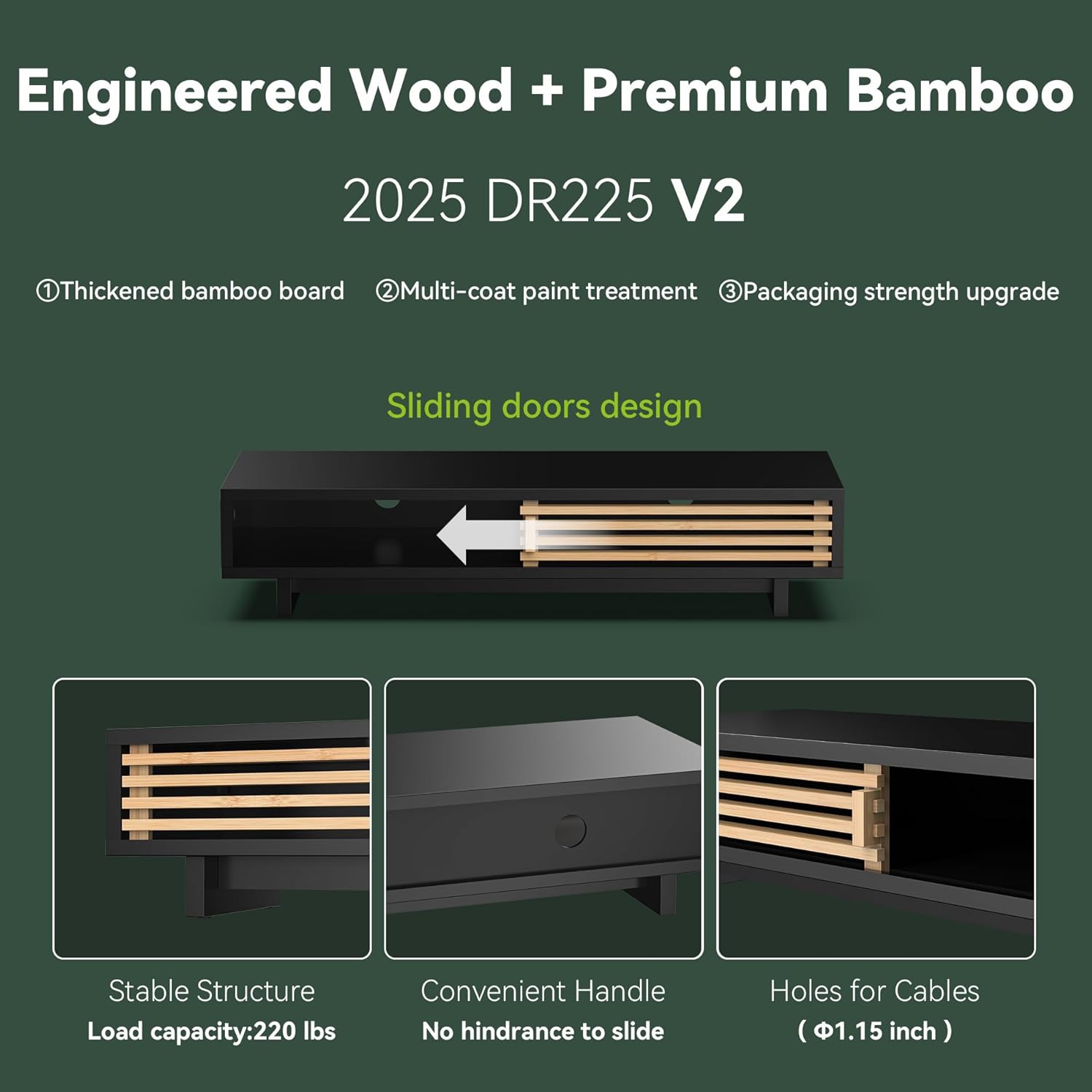 Monitor Stand Riser with Sliding Door, Computer Laptop Stand Desk Shelf Organizer with Storage (Black + Natural Bamboo, 25 Inch)