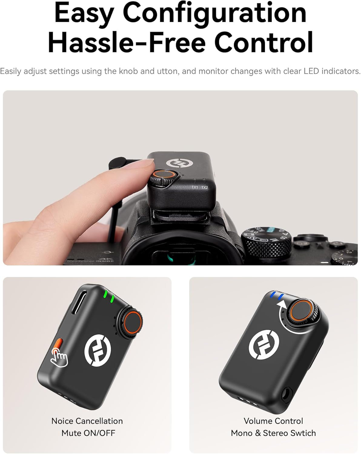 - ăNoise Cancellation & Long-Range Stabilityă Advanced ENC technology removes low-frequency noise for polished audio. Easily adjust 2 noise cancellation levels via the LarkSound App. With a 300m (1000ft) MAX range and RF interference-resistant circuit, it provides stable, pristine sound quality even in signal-dense locations like event venues and busy urban areas.