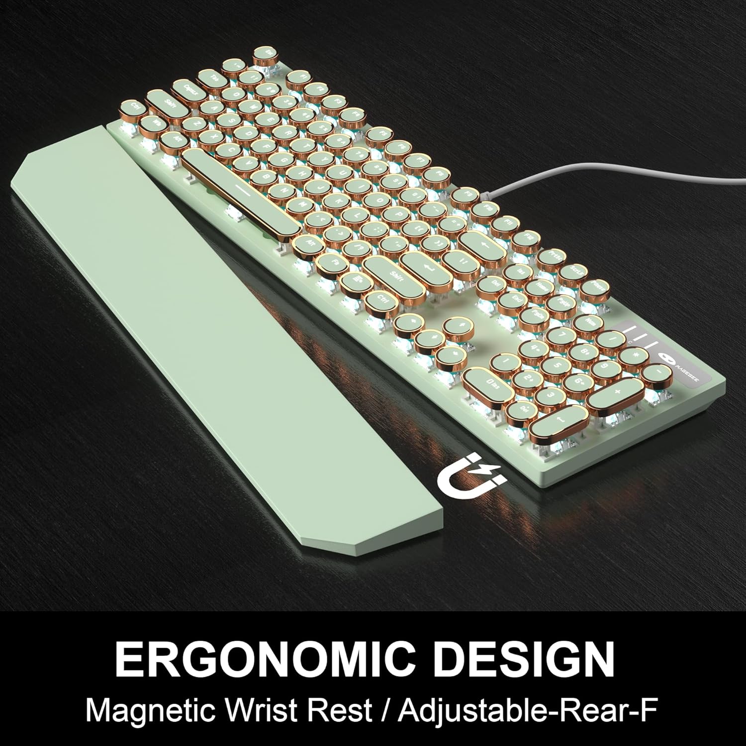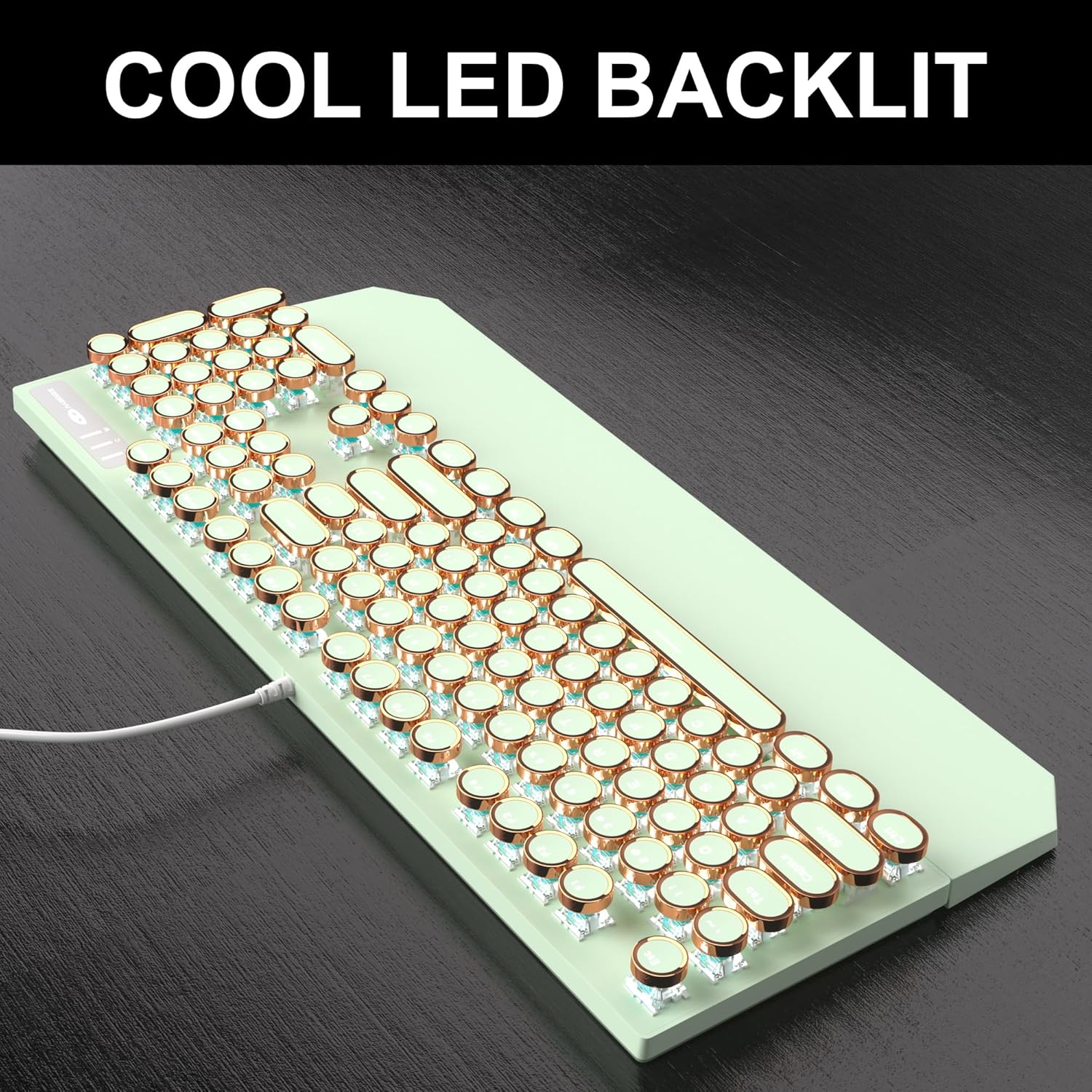 Camiysn Typewriter Style Mechanical Gaming Keyboard, Green Retro Punk Gaming Keyboard with White Backlit, 104 Keys Blue Switch Wired Cute Keyboards, Round Keycaps for Windows/Mac/PC