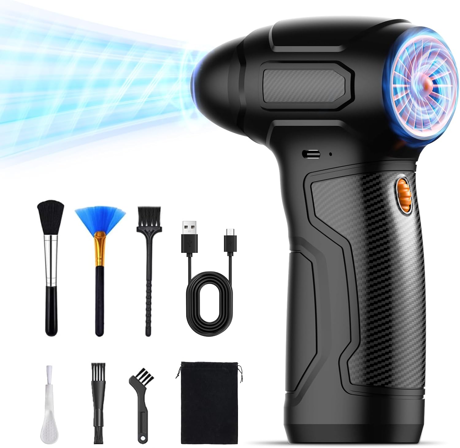 Compressed Air Duster - 200,000RPM Electric Air Duster, Canned Air Blower Alternative for PC, Keyboard, Building Toys, Campfire, Leaf, Home Cleaning (Orange)