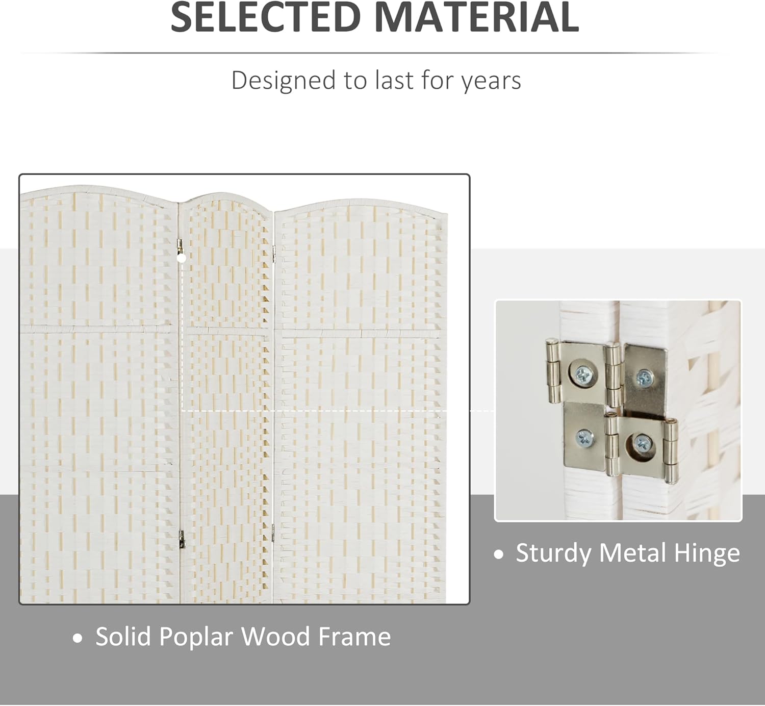 HOMCOM Room Divider, 3 Panel Folding Privacy Screen, 6FT Tall Portable Wicker Weave Partition Wall Divider for Bedroom, Home Office, White