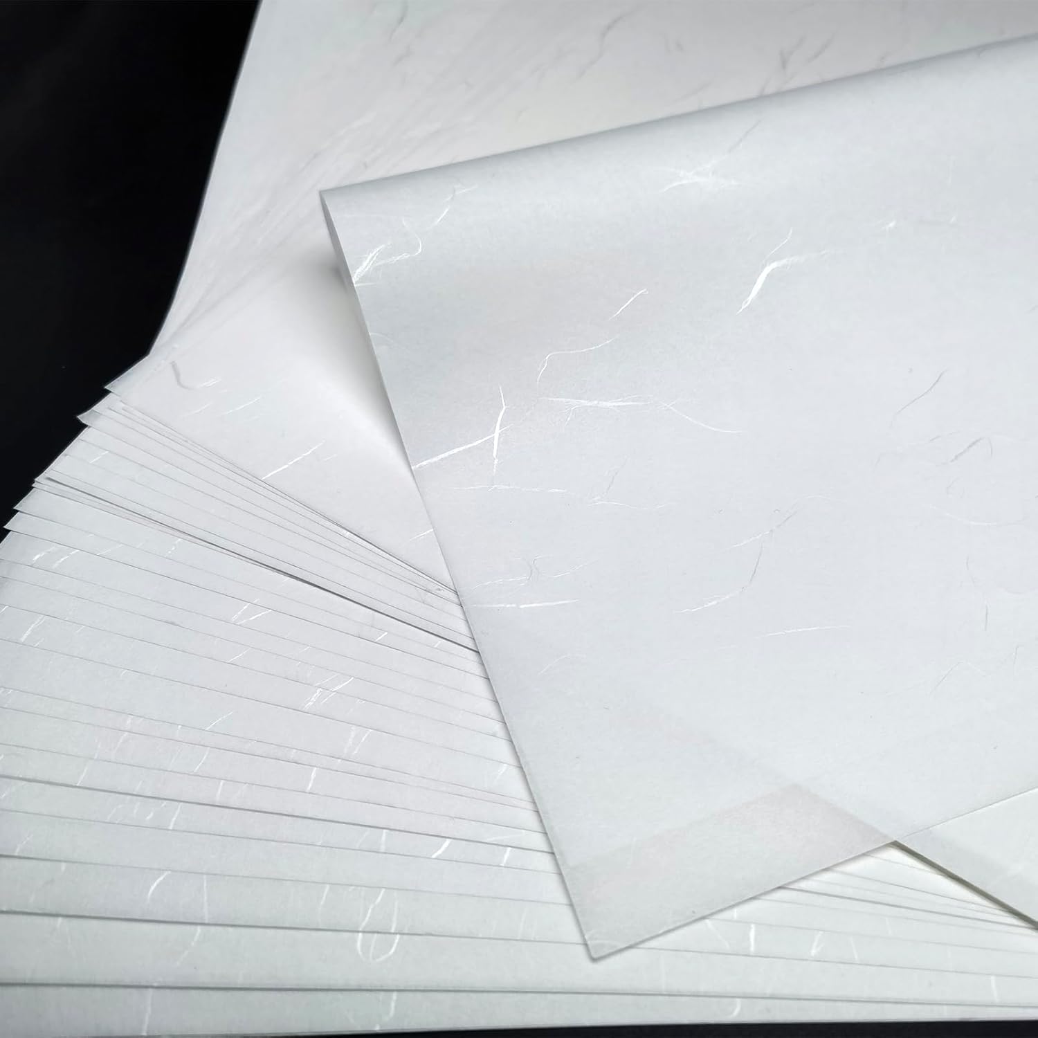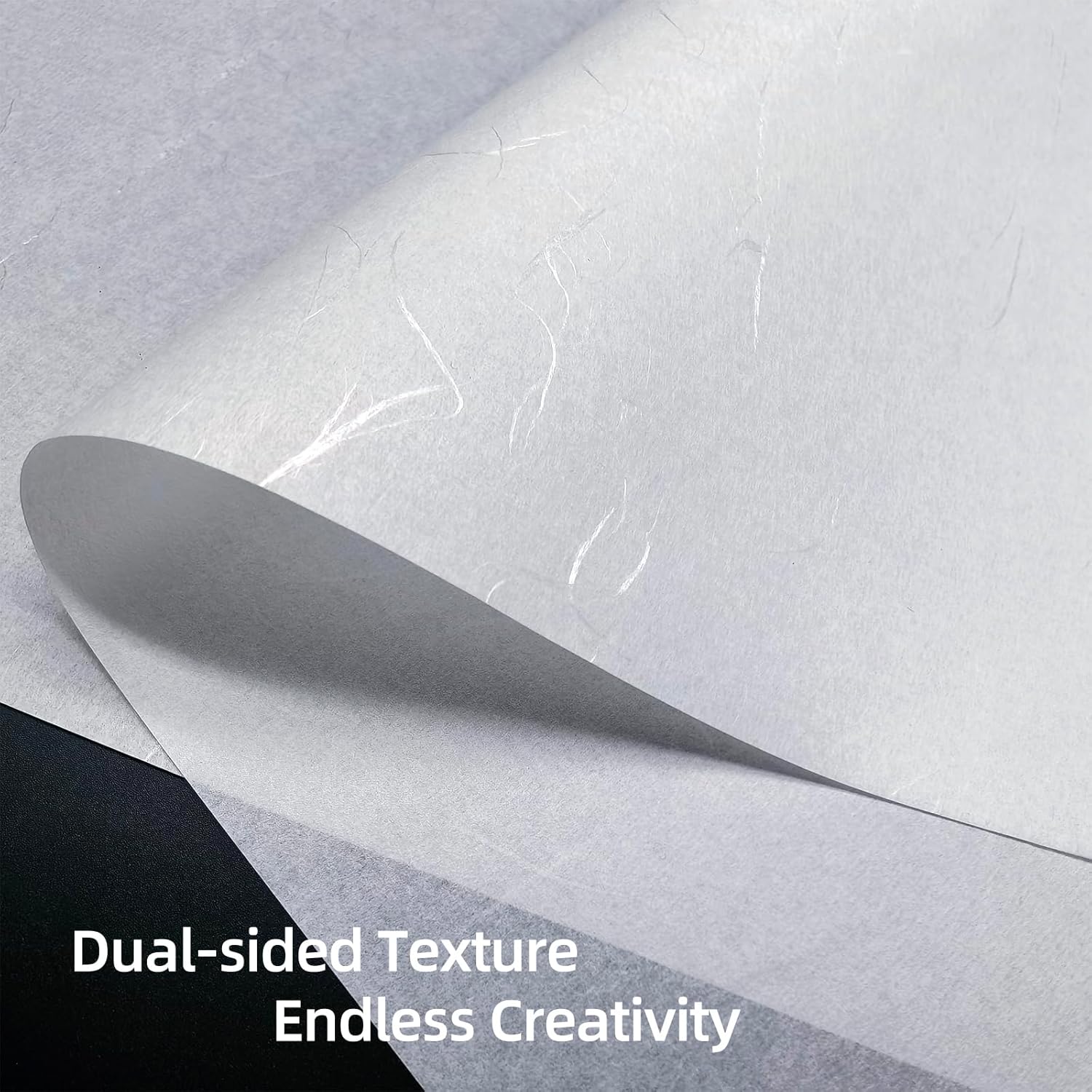- Silver Thread Embellishments, Double-sided Texture: One side is as smooth as , with silkshimmering silver threads, while the other side appears slightly rough, offering ample space for texture manipulation. Artists can employ various techniques such as folding, embossing, and printing to create unique texture effects on the paper's surface, enhancing its artistic expression. Unwanted wrinkles on the paper can be removed through low-temperature ironing, facilitating meticulous creation.