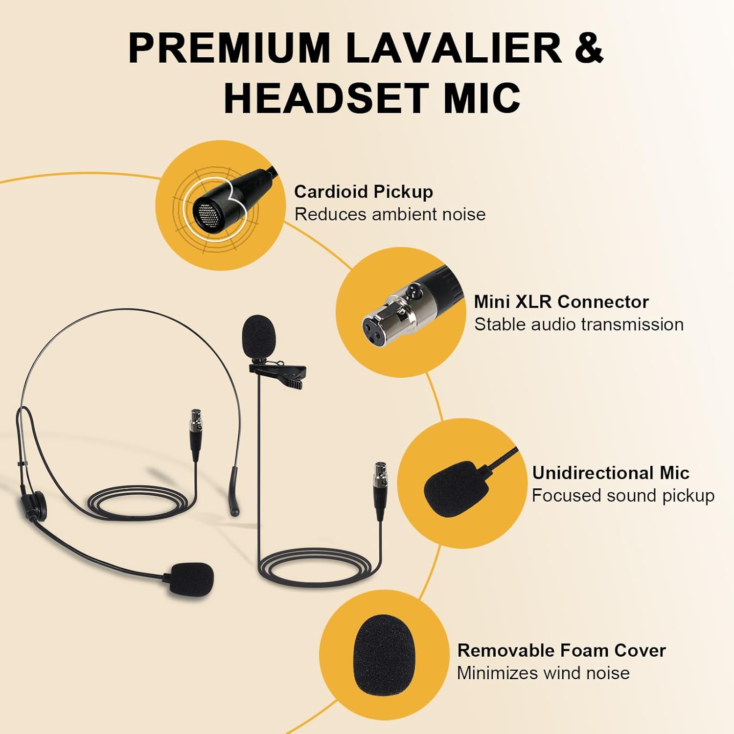 - CLEAR PRISTINE AUDIO:This wireless microphone system boasts UHF digital transmission, featuring a 24-bit/48kHz sampling rate that enhances audio dynamics and fidelity. Special EQ tuning enriches low ends and high-frequency overtones to ensure a balanced and crystal-clear sound quality. Cardioid pickup pattern of the unidirectional lapel lavalier and wireless headset mics isolates environmental noise, effectively reproducing the original sound with precision