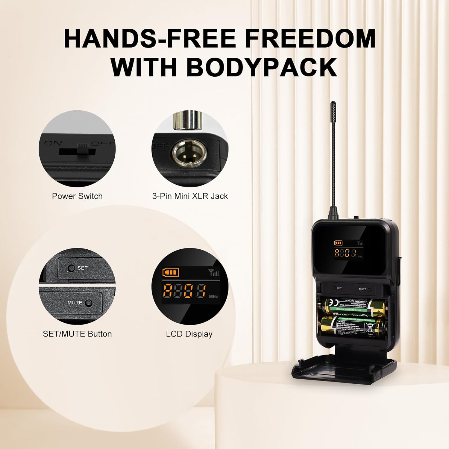 - INSTANT CONVENIENCE: The headsets/lapel mics feature a smart and user-friendly design that allows customers to enjoy out-of-box wireless fun. The bodypack has a MUTE button to avoid disturbing others when multiple users are using it. Additionally, the color-coded bodypacks make it easy to identify individual channels, avoiding the confusion of mixing frequencies with others during use