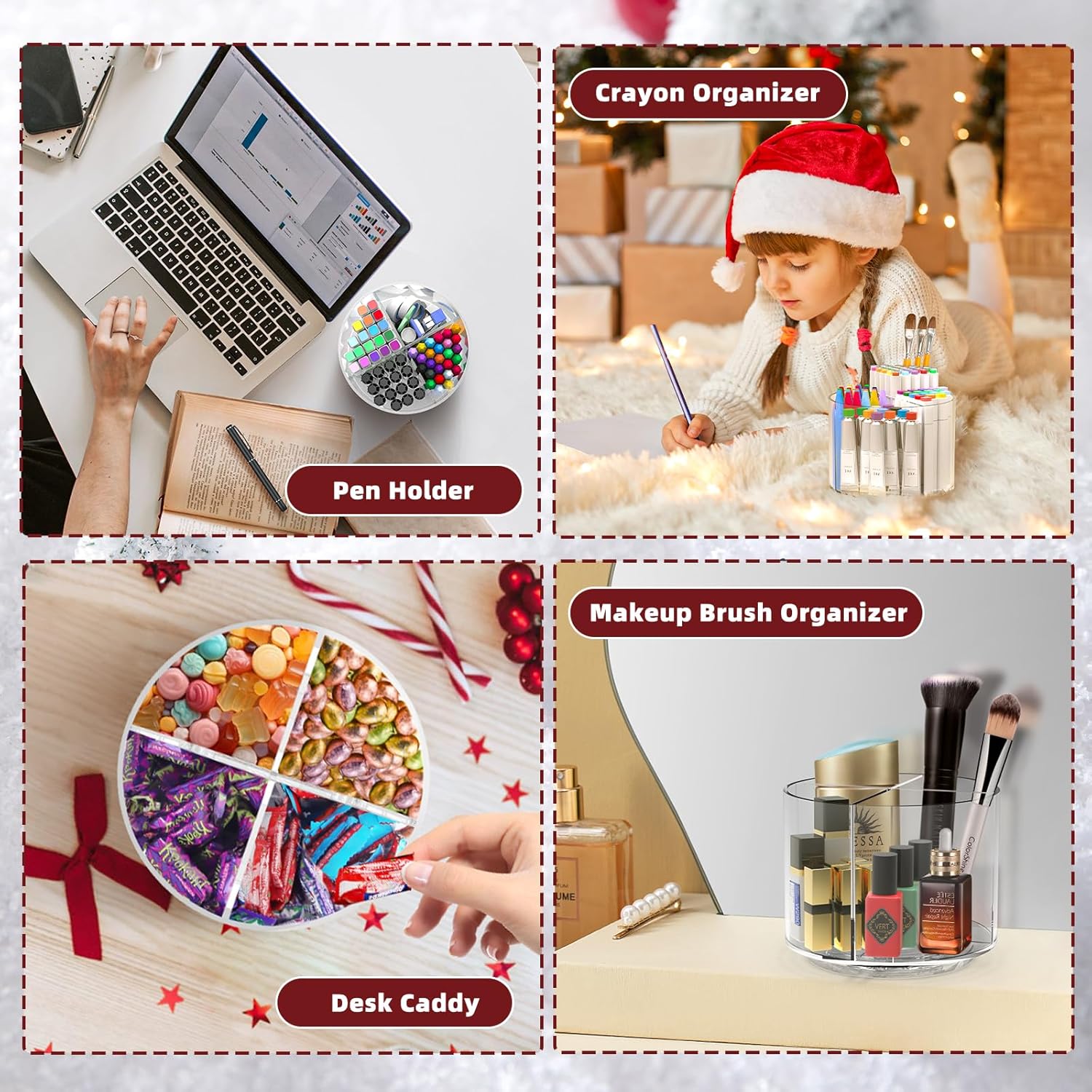 - Multipurpose Acrylic Desk Organizer - Our pen organizer is not only perfect for storing your desktop stationery such as pens, pencils, crayon, markers, highlighters, rulers,erasers, scissors, letter openers, and many other desk widgets. Beyond pens and pencils, this holder is versatile enough to store a variety of items, including makeup brushes, crafting tools, office supplies, and more. Its multi-functional design makes it a valuable addition to any home, office, or studio.