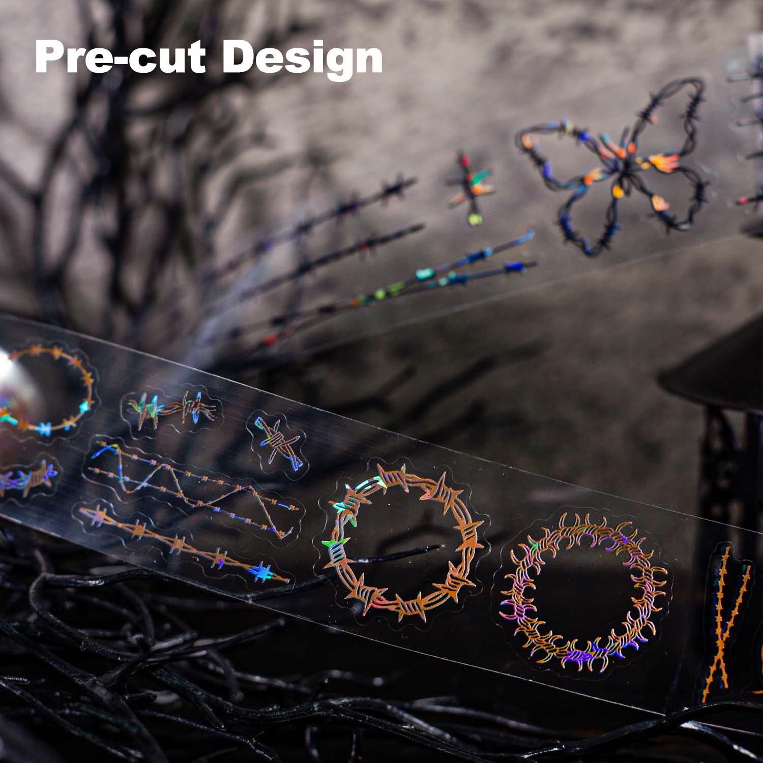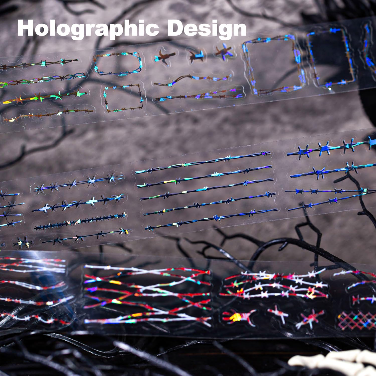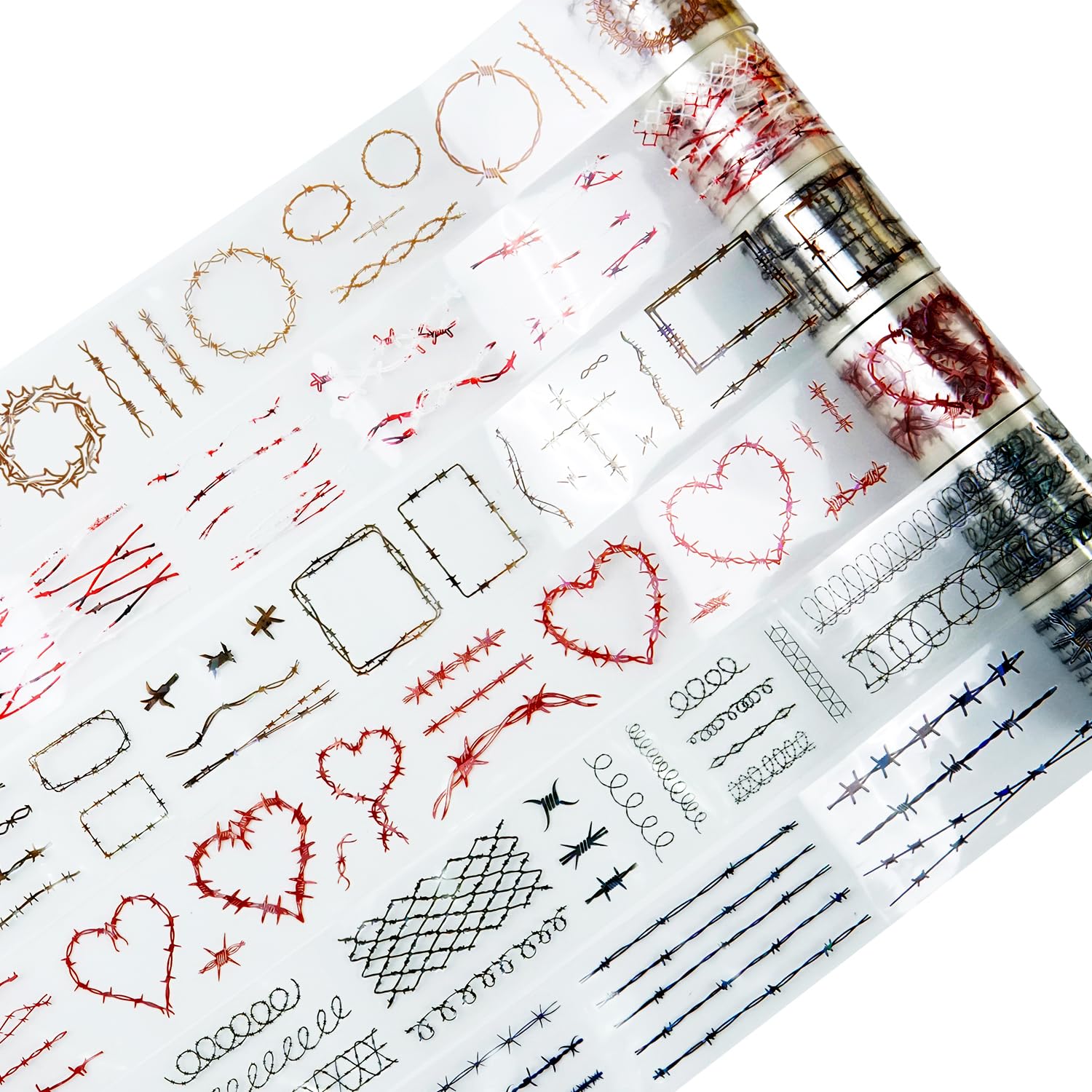 - Innovative Design for Artistic Expression: This Thorn Vine PET tape set features six rolls of holographic, vine-inspired patterns, including hearts, barbed wire, and floral motifs. Ideal for journals, scrapbooks, and DIY crafts, these tapes effortlessly add an artistic touch to every creation