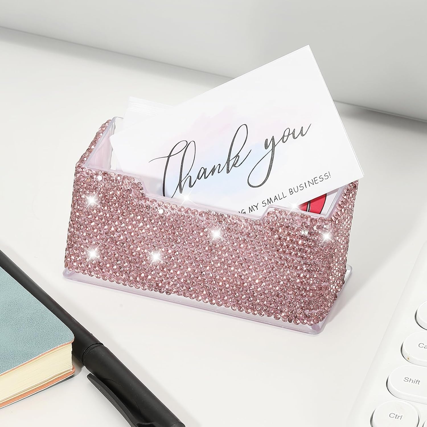 PATIKIL Rhinestone Business Card Holder, Crystal Business Card Holders Bling Business Card Organizer Display Stand for Desktop Desk Office Exhibition, Purple