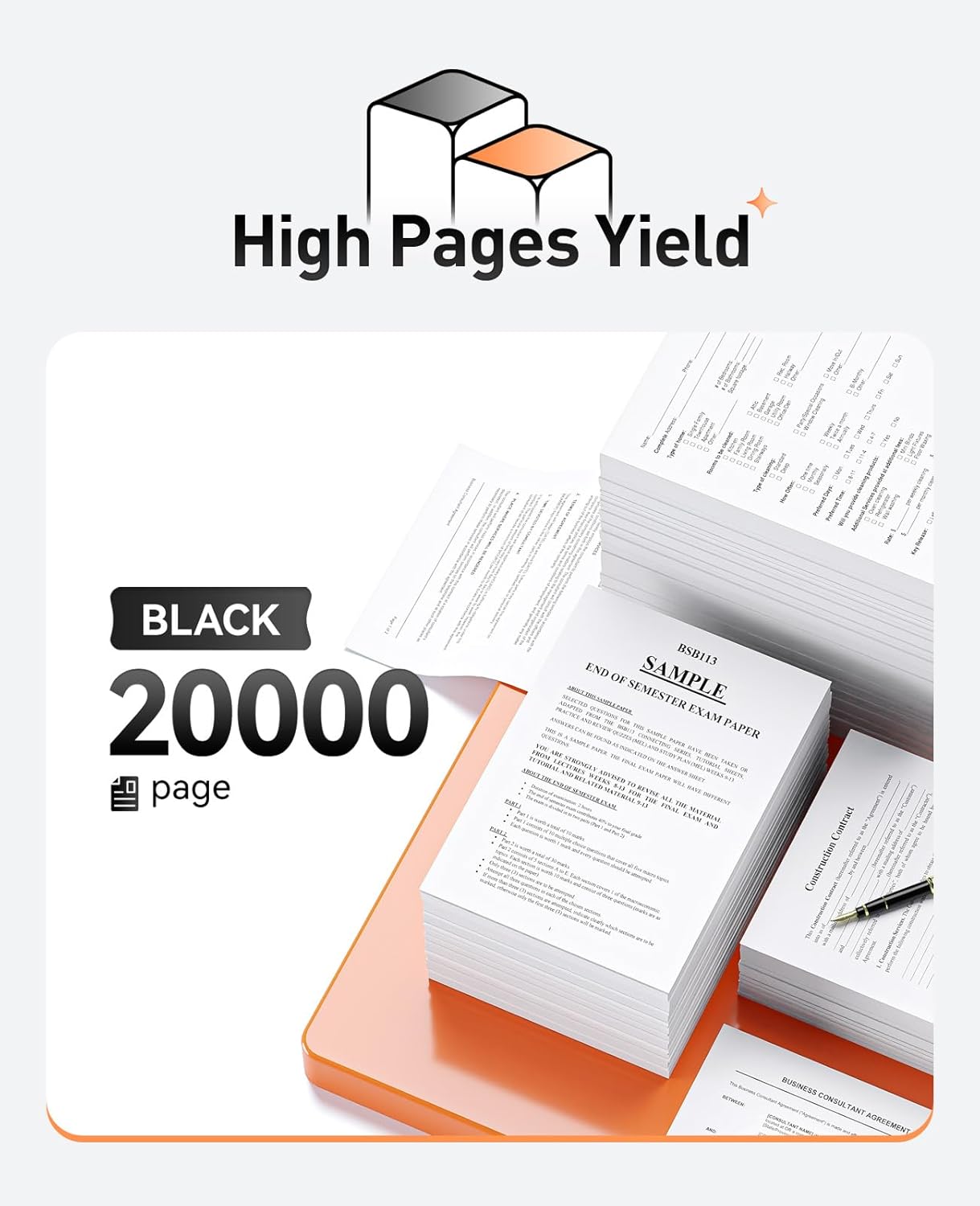 - Yield & Version: 20,000 pages for Black toner cartridge (A4, 5% Coverage), High Yield Version 42X toner cartridge.