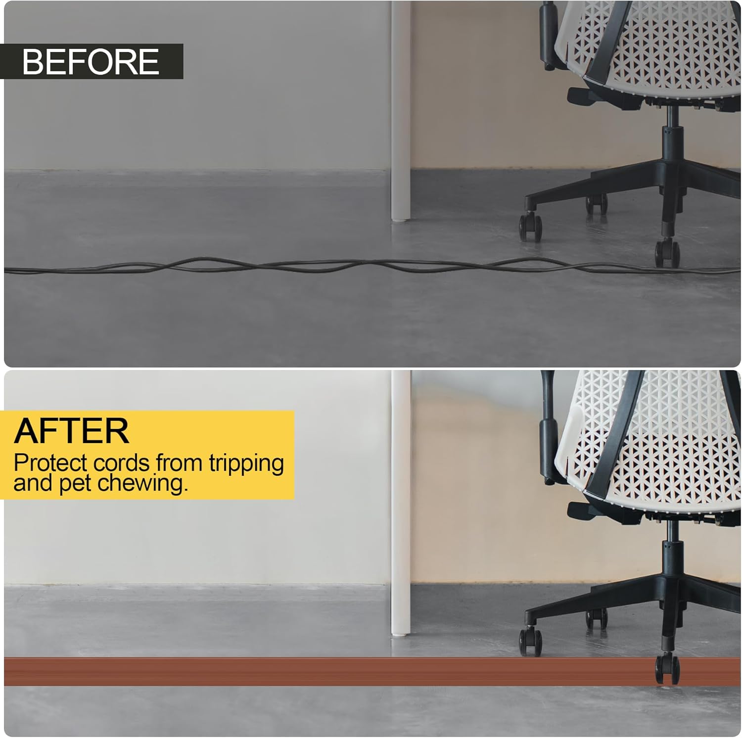 - 【Premium Material】Floor cable cover is made of highly flexible PVC material. With strong toughness, floor cord cover is wear and scratch resistant. Cord cover for wires on floor is easy to unroll, you can cut to any length with a knife or strong scissors. It is thick enough and does not bend easily, suitable for your long term use