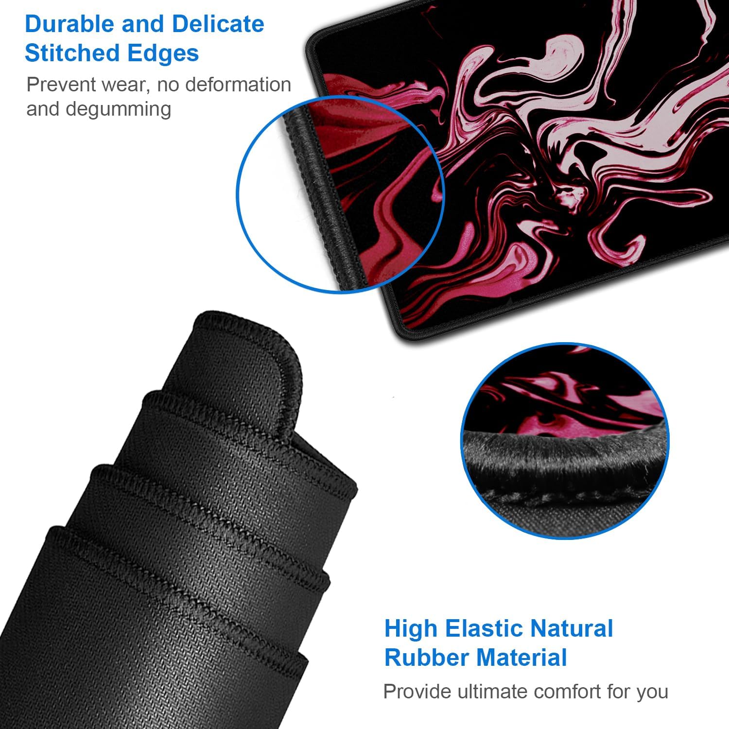 - ☑️High Stability& Durability: Featuring an anti-slip rubber base provides heavy grip prevents sliding or movement of mouse pad. professional edge stitching combined with waterproof material prevents fraying from spilled drinks and ensures longer lifespan.